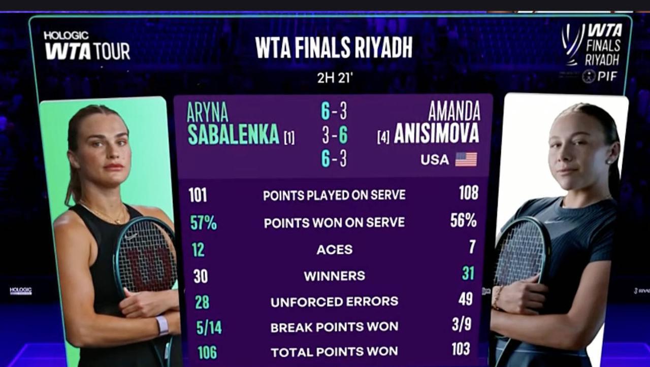 一觉醒来,萨巴伦卡赢了阿曼达晋级决赛了! 回看了比赛,真的精彩绝伦,决赛都不一定有这场好看。 两个“重炮手”,强度拉满,完完全全的对抡大战,最后净胜分只差3分。 阿曼达从头到尾的接发都无懈可击,进攻也非常强势,发球进步也很大了。 但萨巴更强。一到关键分时刻就提档,从不掉链子,发球、防守也稳得离谱。 最后萨巴63/36/63击败阿曼达,赢下这场无比艰难的比赛。 正如萨巴赛后发言:无论我和阿曼达谁赢了,都配得上年终的决赛。 个人认为,这场比赛是年终最燃最飒最刺激的对决。 大家觉得呢? #新锐创作者成长计划#
