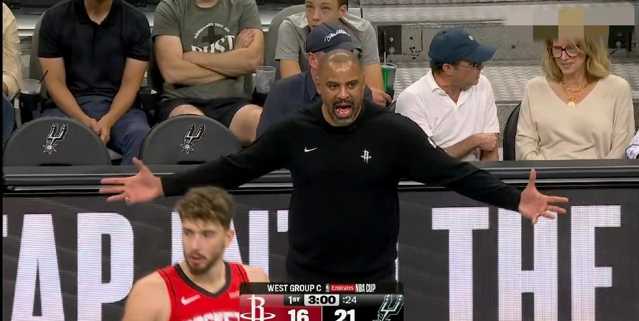 火箭主帅乌度卡快被伊森给气死了!在今天火箭客场挑战马刺的比赛中,当时比赛进行到了第一节的三分钟,伊森在给杜兰特传球的时候出现了一次低级的失误,导致球权回到了马刺手里,这下可把场边的乌度卡教练给气坏了,只见乌度卡教练张着大嘴怒吼伊森,并且不断的向伊森摊手表示不满,整个人看起来特别的生气。