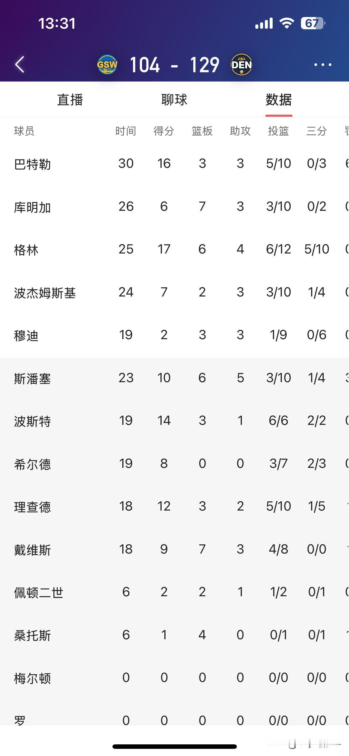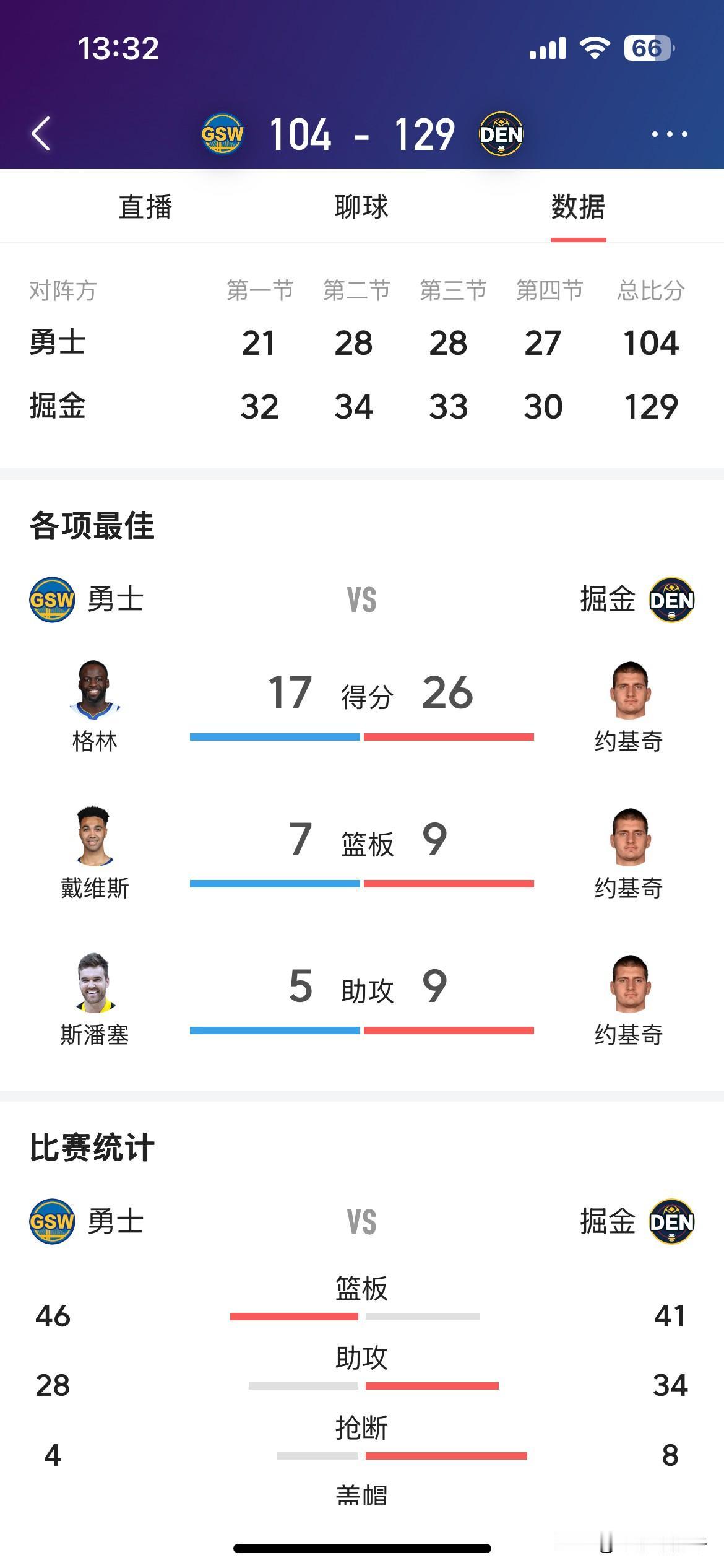 勇士没了库里,那场面简直没法看,直接成了联盟垫底的球队,就说和掘金的比赛,全场被掘金压着打,不得不吐槽一下。 1、库明加&穆迪&波姐真的打不了高端局,没有库引力,真的表现很糟糕,一直以为库明加物超所值,现在来看也就值这个价钱。 2、巴特勒也就一般球星而已,不知道是勇士球员糟糕,还是自己不行,貌似没有库里,一胜难求。 3、科尔一顿操作猛如虎,实际也就那样,教练水平特一般,十几年了就一招。 上次能赢掘金,全靠库里第四节大杀四方拖进加时,不然早输得底朝天了,没了库里被掘金狂虐,没有库里的勇士,在强队面前就像纸糊的一样,不堪一击,这差距实在太明显了。