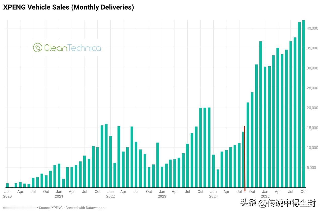 小鹏汽车最近6年月度销量走势(图一)。 其实今年以前整体销量都还是比较“挣扎”的,转折点就是划红线的那个时候,2024年8月,当月小鹏MONA M03首次上市。 此后,小鹏的月度销量开始一路走高,最近两个月甚至已经连续突破4万辆大关,有意思的是,MONA并不是小鹏从0到1开发的,是从滴滴那里收购过来的资产。 从这个角度甚至可以说小鹏的崛起有一定偶然性,当然,这种偶然其实也是要有充足条件的,也是实力的展现。 就像小鹏人形机器人IRON的意外爆火一样,背后其实也是积累的能力到位了,不然是不会有这样的意外和偶然的……
