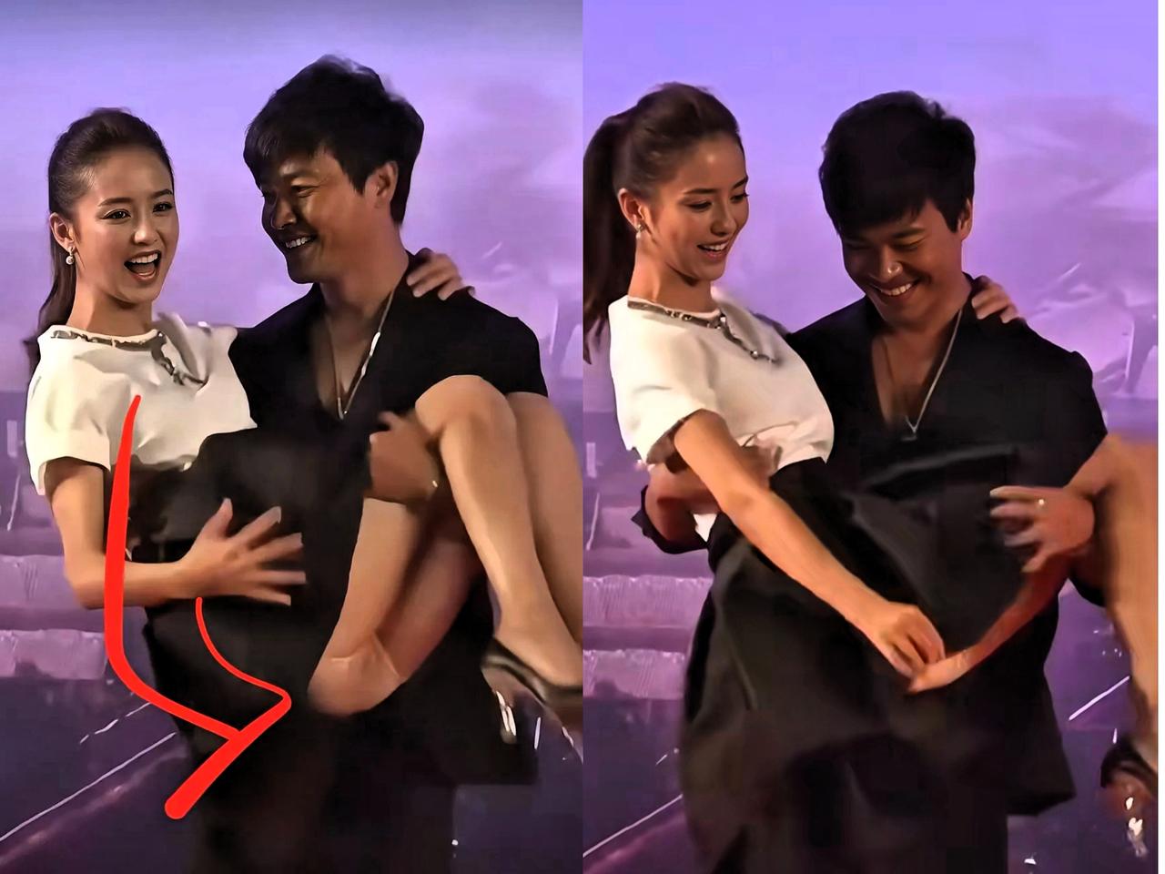 估计佟丽娅看了这张照片, 都有点尴尬了吧😉,那时的陈思诚和佟丽娅,确实是甜蜜得很,感情浓得仿佛要溢出来。 陈思诚有这么个漂亮媳妇,那叫一个得意,当众就把喜爱写在了脸上。可他也是真粗心呀,没注意到佟丽娅穿着短裙就直接公主抱了。 虽说这在热恋时可能是个甜蜜的举动,但从另一个角度看,也说明男生有时候就是神经大条。不过话说回来,这也算是他们爱情里一个有点小瑕疵的小插曲吧。 爱情不就是这样,有甜蜜有温馨,也会有一些小尴尬和小疏忽。大家觉得这种小插曲,会不会影响他们曾经的美好呢?