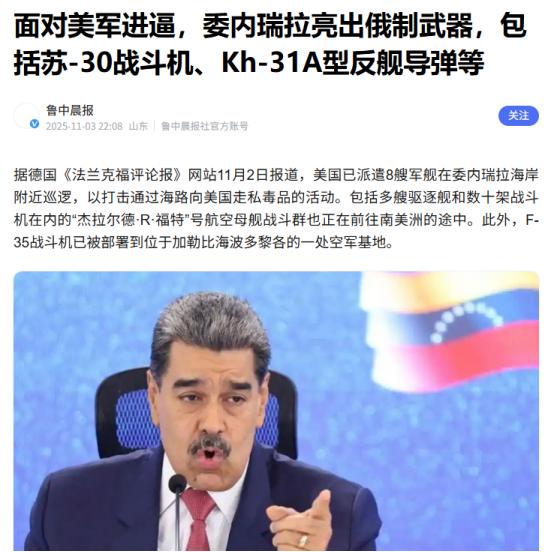 普京仗义,为了盟友不惜与美撕破脸,或给马杜罗“榛树”导弹! 要说国际上谁最够朋友,普京绝对得算一个。最近委内瑞拉总统马杜罗那边刚发求援信,普京这边立马就动真格的了,直接顶着美国的压力给盟友送武器,那股子仗义劲儿真是没谁了。 毕竟这些年马杜罗在美洲被美国折腾得够呛,经济制裁一轮接一轮,军事上还被时不时威慑,能靠得上的硬靠山,也就俄罗斯这一家了。 当地时间11月4日,俄罗斯国家杜马国防委员会第一副主席阿列克谢·茹拉夫列夫直接把话挑明了,俄方已经开始给委内瑞拉送武器,最近好几架伊尔-76大型运输机降落在加拉加斯,卸下来的全是硬家伙——“铠甲-S1”和“山毛榉-M2E”防空系统。 这俩装备可不是摆样子的,懂行的都知道,“铠甲-S1”是近程防空的王牌,8×8的高机动底盘让它能随便跑,不管是敌方的战斗机、巡航导弹还是现在流行的无人机,它都能精准拦截,反应速度快到毫秒级,专门对付突发的空中袭击。 而“山毛榉-M2E”是中程防空的主力,覆盖范围广,还能同时锁定多个目标,就算对方搞饱和攻击也能扛得住,这两套系统一搭配,直接给委内瑞拉织了张近中程防空网,之前那些老旧装备的漏洞一下就补上了。 茹拉夫列夫说这话的时候底气十足,直言俄罗斯是委内瑞拉最重要的军事技术合作伙伴,这话真不是吹的。从2005年开始,俄委之间的军购合同就没断过,金额早就超过几十亿美元了。 马杜罗的前任查韦斯在的时候,就从俄罗斯买了24架苏-30MK2歼击机、50多架直升机,还有12套“托尔-M1”防空系统,甚至连10万支卡拉什尼科夫冲锋枪都给配齐了。 2006年双方还签了合同,在委内瑞拉建了AK-103冲锋枪的工厂,连子弹都能自己造,这种深度合作可不是随便哪个国家能比的。 更关键的是,俄罗斯内部专门有个“委内瑞拉军事技术兵团协会”,听名字就知道是专门对接委内瑞拉的,空军需要的武器装备全靠这个协会负责,小到步枪零件,大到战斗机引擎,都能精准供应。 至于这次送了多少、具体花了多少钱,茹拉夫列夫没细说,只说这些都是机密,但话里话外透着自信:“美国人将看到大惊喜”。这话明摆着就是说给华盛顿听的,你不是天天在我家门口搞事吗?我现在就在你后院递家伙,看你怎么收场。 而这个“大惊喜”还不止防空系统这么简单,茹拉夫列夫话锋一转,抛出了个更重磅的消息——不排除给委内瑞拉送“榛树”高超音速导弹。 这玩意儿可不是普通武器,今年8月普京刚宣布俄军已经开始装备量产型,上个月还在乌克兰战场上实战过,一枚就端掉了第聂伯罗市的机械制造厂,威力实打实。 它用的是“火箭助推-滑翔”技术,飞行速度能到9-10马赫,射程最远能到3000公里,要是部署在委内瑞拉,美国大部分地区都在打击范围内,连华盛顿都跑不掉。 更狠的是它的突防能力,弹头能在临近空间机动,现在美军的“宙斯盾”反导系统根本拦不住,这要是真送过去,等于直接把刀架在了美国脖子上。 其实俄罗斯敢这么干,也是有底气的。国际上根本没有条约禁止这种武器交易,茹拉夫列夫也说了,从小型武器到飞机,只要委内瑞拉需要,俄方都能提供。 这些年俄委的军事合作一直没断过,俄罗斯的战机经常在委内瑞拉机场停靠,军舰也能进港口维护,双方的军事专家还定期互访,委内瑞拉军人甚至会去俄罗斯参加国际军事比赛,这种默契不是一天两天练出来的。 之前美国就多次批评俄罗斯给委内瑞拉卖武器,说查韦斯买的装备超出了国防需要,可俄罗斯根本没搭理,该合作照样合作。 美国这边早就坐不住了,当年俄罗斯给委内瑞拉卖20亿美元武器的时候,美国国务院就跳出来批评,现在听说可能要送高超音速导弹,更是急得不行。 之前以色列用完“二鬼子”就扔的做法,跟普京现在的举动一对比,高低立判。俄罗斯送的不光是武器,更是给马杜罗的底气,也是给美国的警告:别以为你的后院你就能说了算,我的盟友你动不得。 现在委内瑞拉已经收到了第一批防空系统,虽然具体部署在哪没对外说,但明眼人都知道,有了俄罗斯的支持,马杜罗应对美国的筹码又多了不少。 说到底,普京这波操作就是实打实的“仗义”。不玩虚的,盟友求援就立马行动;不怵硬的,美国反对照样送武器。这种说到做到、敢作敢为的态度,不光让马杜罗在美洲站稳了脚跟,也让全世界看到了俄罗斯的硬气。 相比那些用完就弃的“塑料盟友”,普京这种能为朋友两肋插刀的做法,才是真正的大国担当。美国要是还想在委内瑞拉周边搞小动作,可得好好掂量掂量,现在的马杜罗背后,站着的是手握高超音速导弹的俄罗斯。