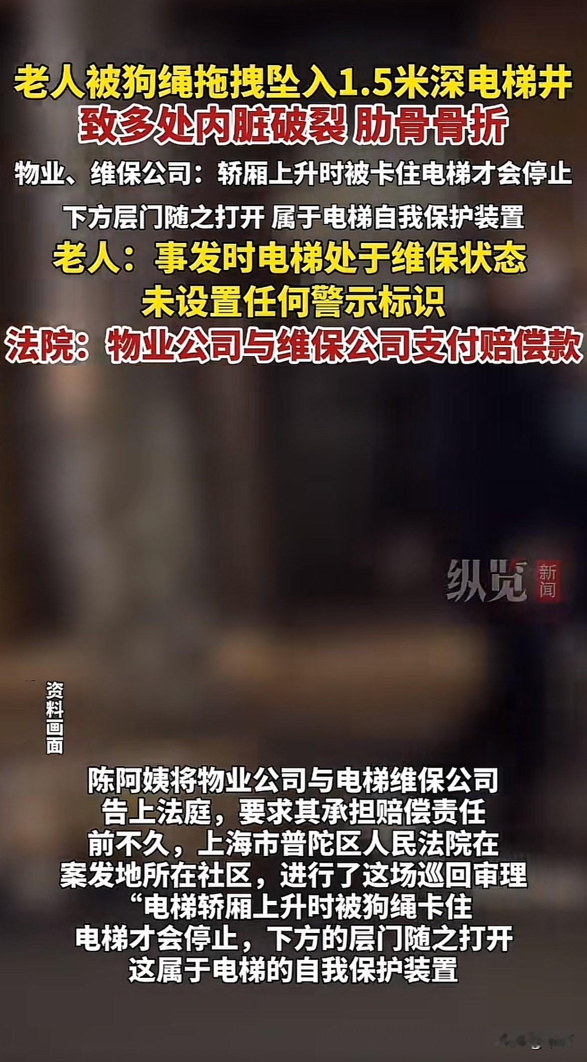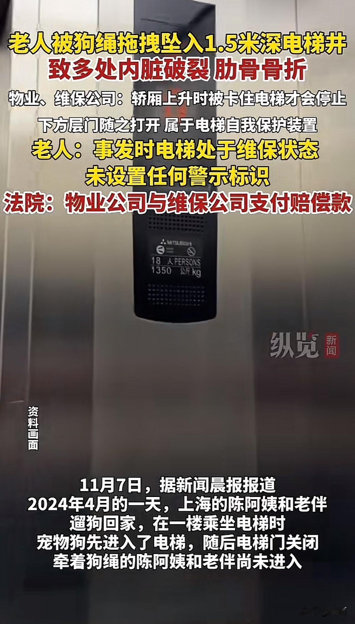 上海普陀区一位阿姨遛狗回家,狗先跑进电梯,电梯门关上后轿厢上升,阿姨被狗绳拖拽到电梯口,不慎跌入1.5米深电梯井,多处受伤。阿姨说电梯平日故障多,事发时在维保却没警示,把物业和维保公司告了,可电梯没监控,双方说法不一。最后经社区调解,两家公司给了补偿。 这事儿看着是意外,其实藏着隐患。物业得把电梯维护做到位,该设警示就设,监控也得配齐;大家乘梯牵宠物,可千万别让人和宠物分开。老旧小区电梯安全真得重视,各方多上点心,才能避免类似危险发生。