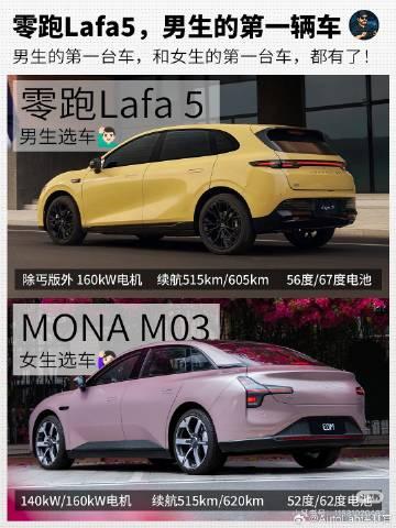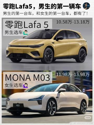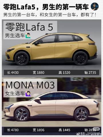 零跑Lafa5预售了,10.58-13.18万,抛去丐版不看,最终正式价格大概是10.98-12.58万的样子(随便猜的😁) 零跑Lafa 5相比之前那堆C系列SUV,多了一些情绪价值,之前的C11/C10过于“力工”,不是很适合刚毕业的男大学生 Lafa 5这个两箱形态,先天灵活好开,而且兼顾实用性,很契合男生的用车需求,零跑这台车可能不一定有ID 3好开,但配置和空间肯定比ID 3强 至于同价位的小鹏MONA,个人感觉还是更适合女生,轿车形态,颜值好看,配色多样,女车主都很认可,辅助驾驶也不错。 所以男生选零跑Lafa5,女生选小鹏MONA,大家觉得呢?🤔【来自懂车帝车友圈】