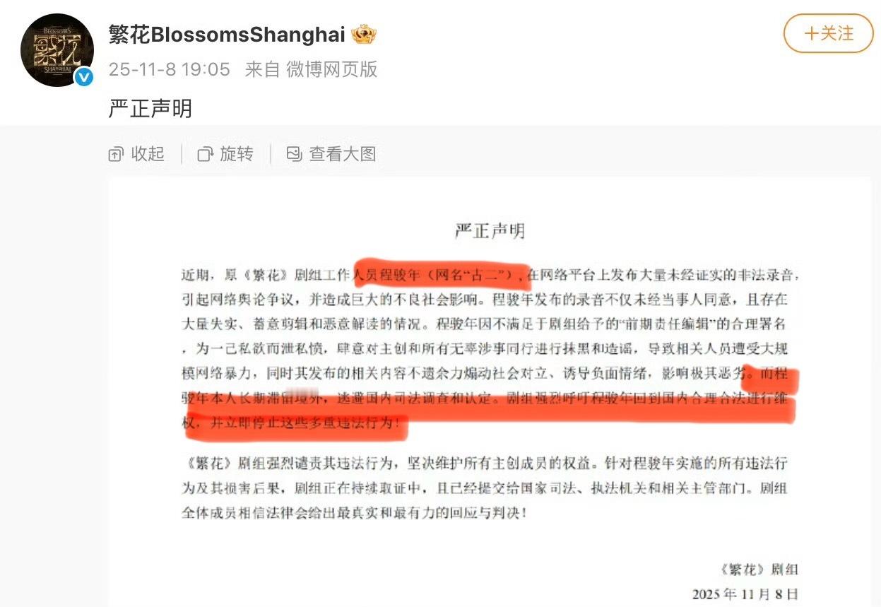 繁花剧组发声明了,王家卫咋一直沉默?[吃瓜][吃瓜][吃瓜]繁花