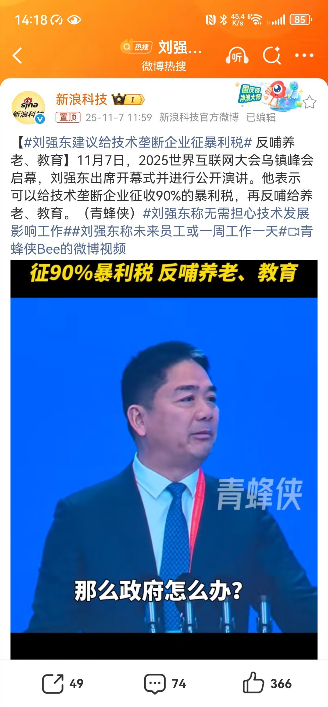 强东今天同时说出这样的话,他自己大概没觉得逻辑上似乎缺乏自洽性……或者,他觉得最后献上的这一策,就把一切不自洽都完美补齐整了?