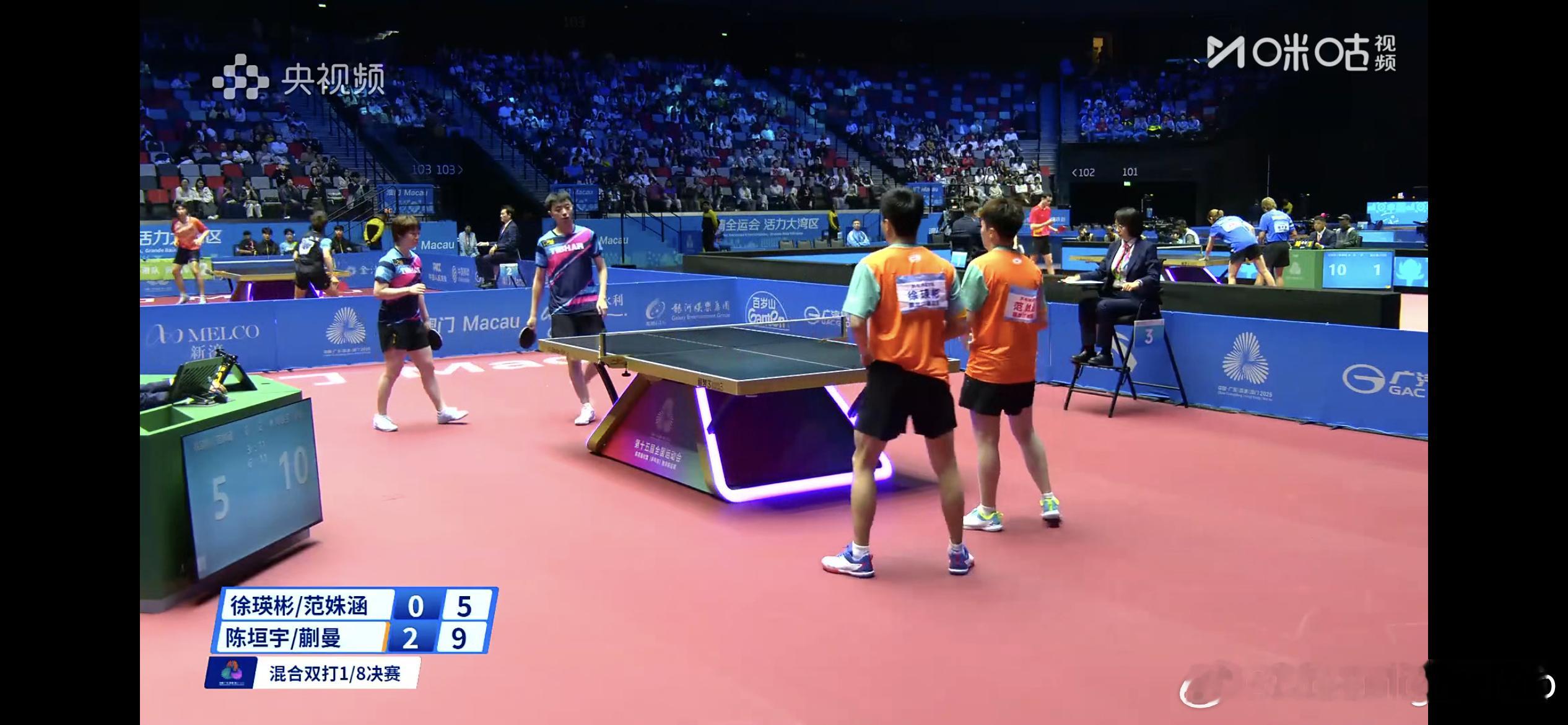 陈垣宇/蒯曼(江苏)3比0范姝涵/徐瑛彬(黑龙江)【11:3,11:6,11:5】