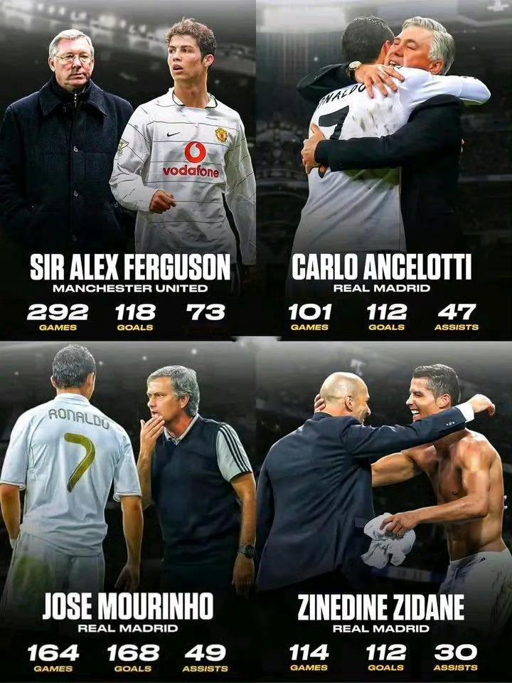 🚨一些球星在各大主教练麾下进球统计(100球以上)