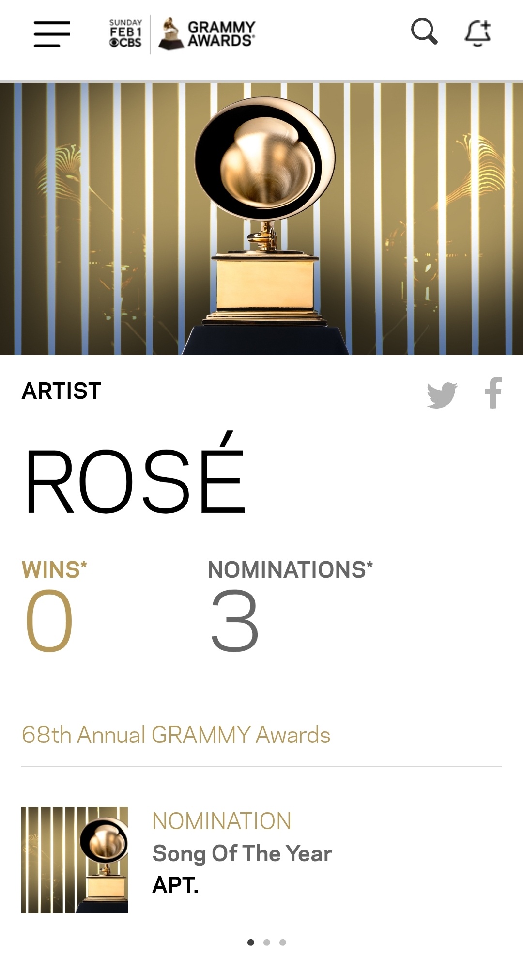 格莱美官网已在艺术家列表中加入朴彩英名字。