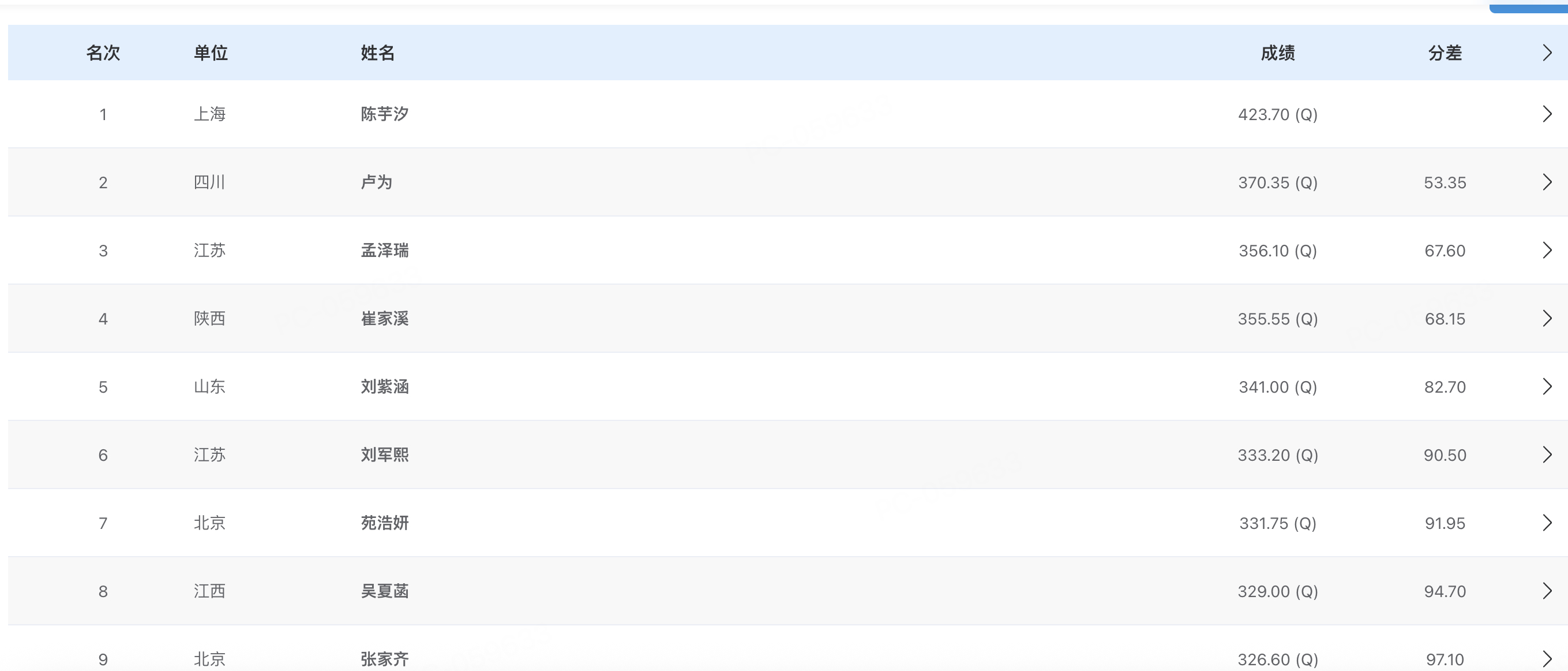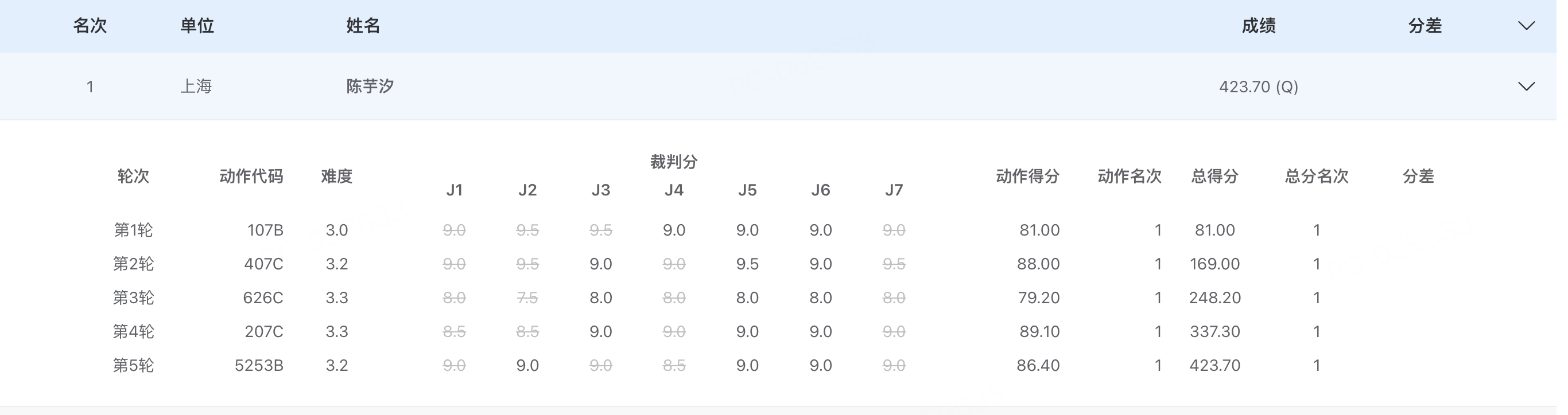 陈芋汐断层晋级10米台决赛 女子10米台的半决赛刚刚结束,上海队陈芋汐实现断层领先,且5论成绩都是第一。 陈芋汐领先第二名53.35分