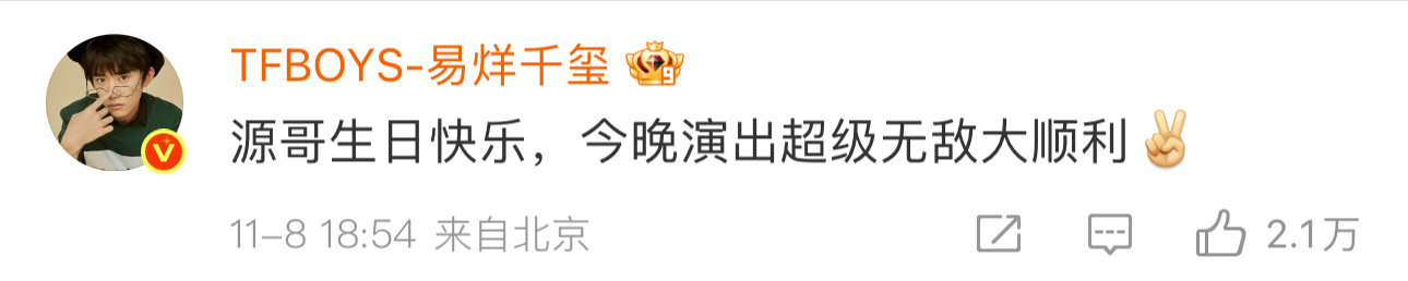 易烊千玺送王源生日祝福易烊千玺给王源送生日祝福千玺给王源送生日祝福,祝王源生日演