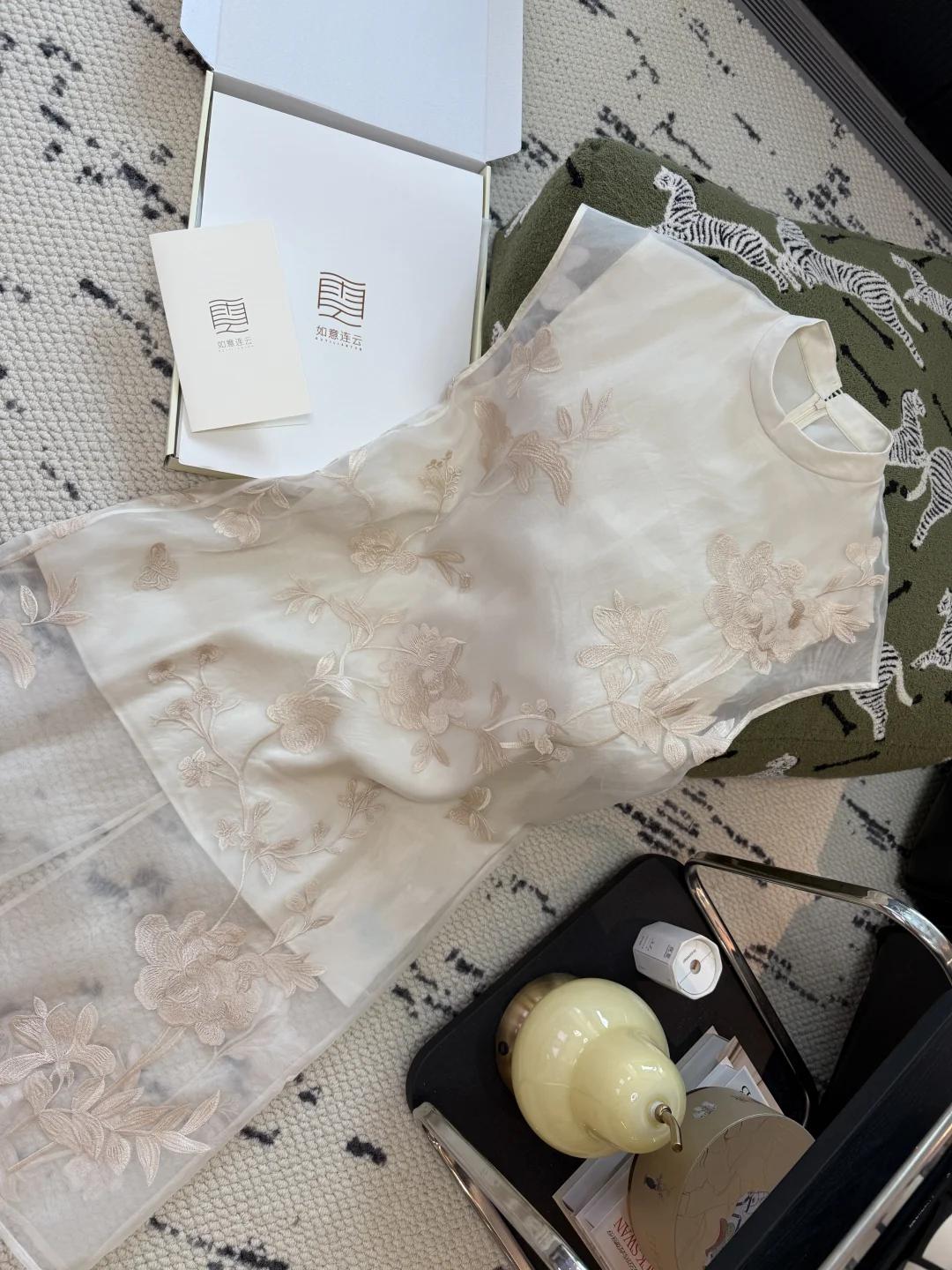 一年四季都会为高质感的新中式买单~ 🌿🤍 李云霄同款我也get啦!!🐔洞!!! 想着今年夏天这么热 穿点宽松的连衣裙叭,今日份开箱直接傻眼了,这也太精致了叭、欧根纱和刺绣一整个高级住了!不愧是我喜欢了很久的如意连云~~~桑拿天快乐啊我的宝宝们🥵