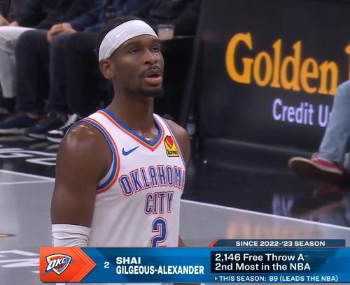 ☞自22-23赛季开始,亚历山大总计罚了2146次,排名第二