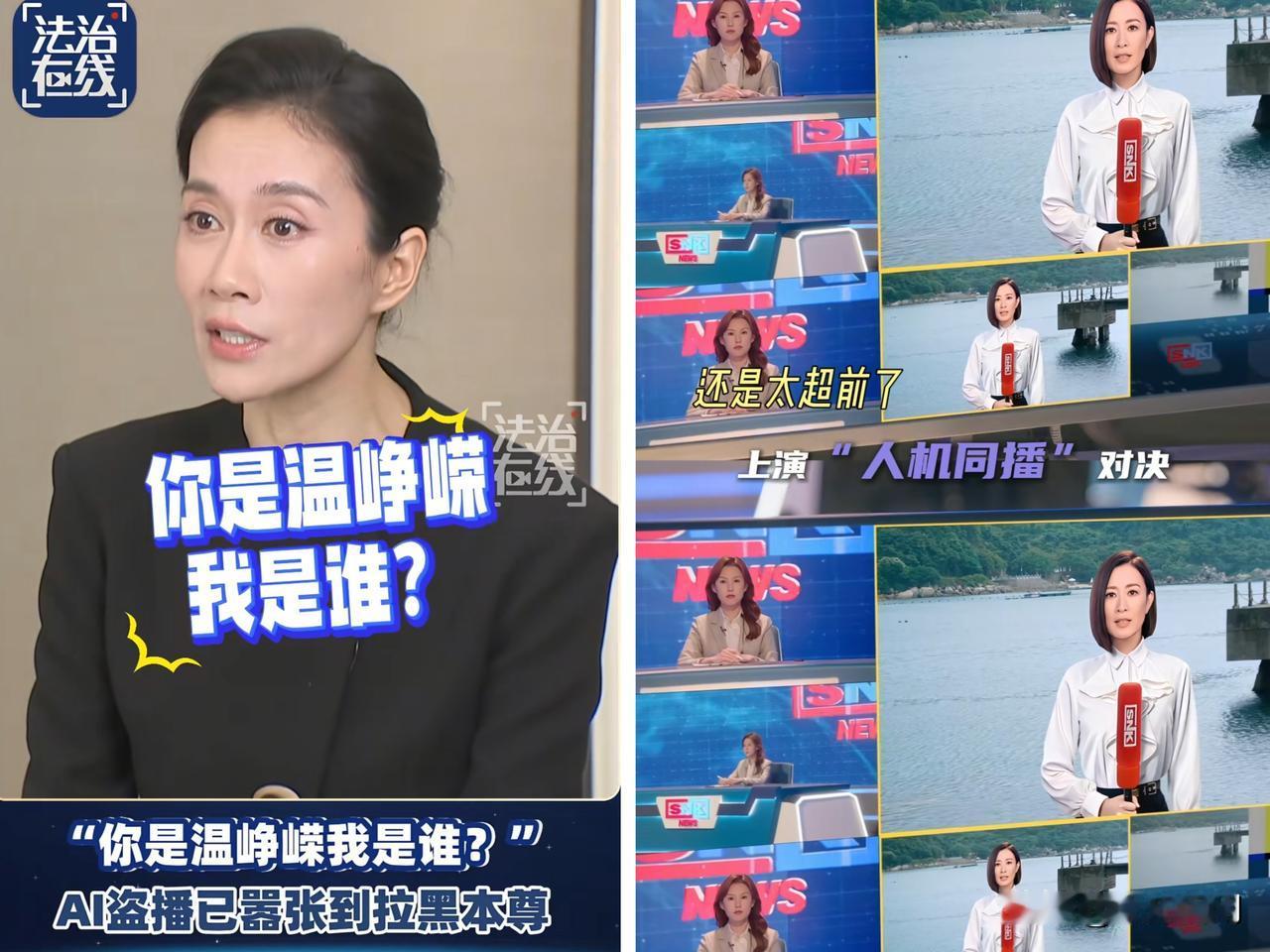 太离谱了!《新闻女王2》中的情节,竟然在现实中出现!AI温峥嵘同时现身3个直播间,还把真正的温峥嵘给拉黑了!恐怖不? 不知大家看了最近热播的港剧《新闻女王2》不?里面有个情节,文慧心已经离职、梁景仁也已去世,可他们却都还在“直播”今天的新闻。 原来,是他们的前公司拿他们以前的是音视频,利用AI技术在直播。 原以为这种离谱的事情,只会出现在电视剧里。没想到还出现在了真实的世界里。 昨天,演员温峥嵘自爆刷手机时,竟刷到自己在直播,当她上前质问“你是温峥嵘我是谁”时,竟被对方秒拉黑。 是不是太不可思议了? 不得不说,现在AI技术真的太强大了,甚至都到了能“以假乱真”的地步。这给我们的工作生活带来了极大的便利,但同时也生出了很多隐患。 这是把双刃剑,得守住隐私与权益的防线,才能让技术真正服务于人啊!