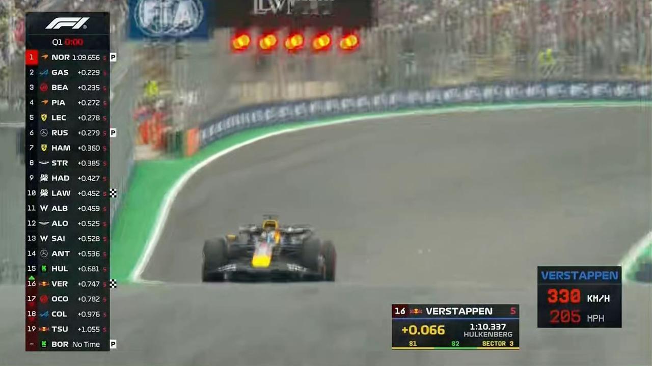 车手冠军争夺结束了!2025F1圣保罗排位赛,诺里斯杆位!维斯塔潘Q1出局,最终P16、皮亚斯特里P4。 谁能想到维斯塔潘Q1就淘汰,俩大牛Q1全出局,俩小牛全都晋级Q3。好消息是2024年巴西站潘子P17发车最终夺冠。 老对手汉密尔顿跟着止步排位赛Q2,最终位列P13。 最终诺里斯稳得很,再度拿下正赛杆位,安东内利第二,乐扣第三。