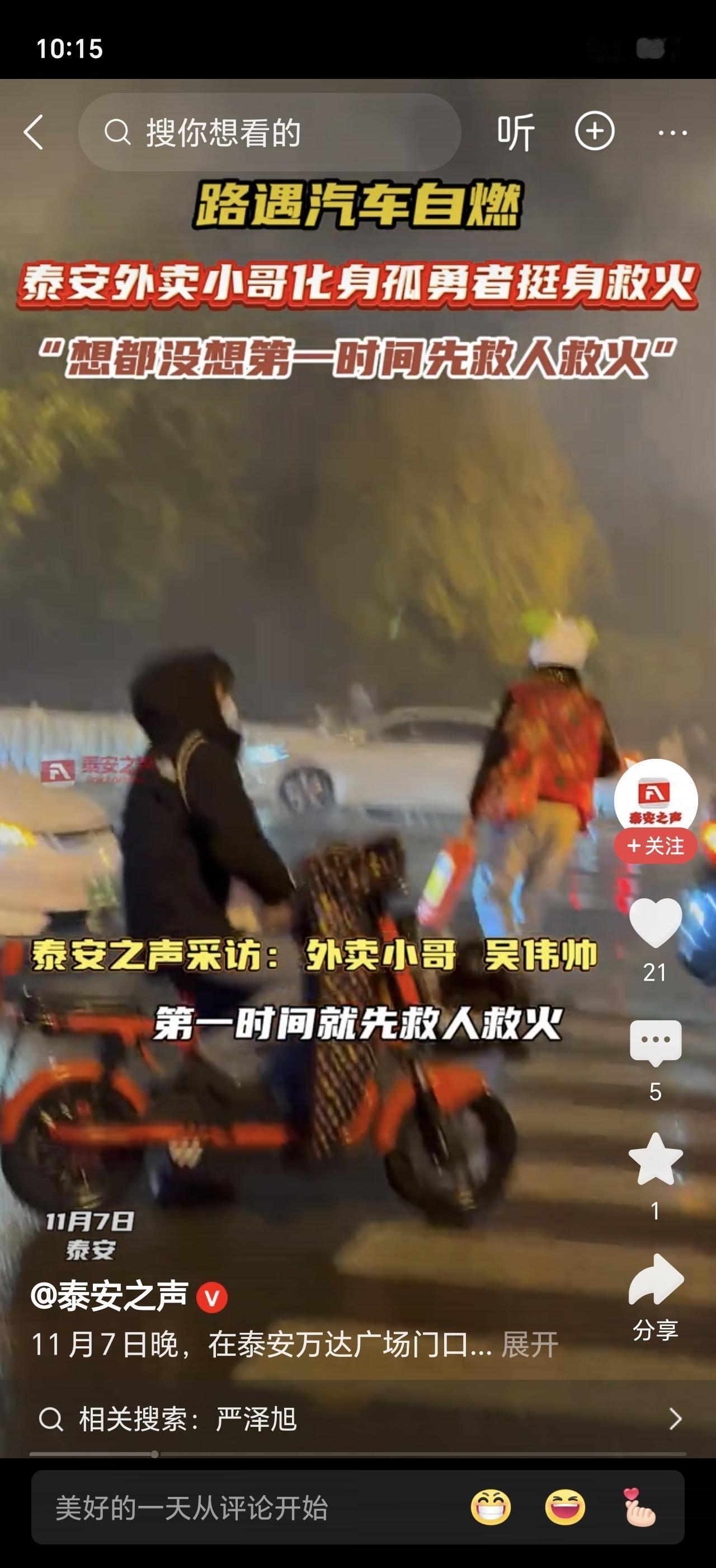 外卖小哥急着送餐,却突然猛踩刹车跳下车——这波操作谁看了不竖大拇指?前方路口一辆私家车突然冒火,浓烟裹着火星子往外窜,车主吓得脸都白了。 周围人下意识往后退,就这小哥,反手从电动车侧筐拽出灭火器,拔销、对准火根一顿喷,动作干脆得像受过训练。浓烟呛得他直皱眉,胳膊被火星燎到也没停手,直到火势被压下去,又帮车主检查有没有复燃的可能。 火灭完他抹了把熏黑的脸,看了眼餐品没耽误,跨上车就往送餐地址赶,只留下车主在后面不停道谢。 真的太戳人了!外卖小哥赶路是本职,可危急时刻敢往前冲,这份善良和勇敢不分职业。平凡人挺身而出的样子,就是最动人的光! 外卖员超时送餐 送外卖事故