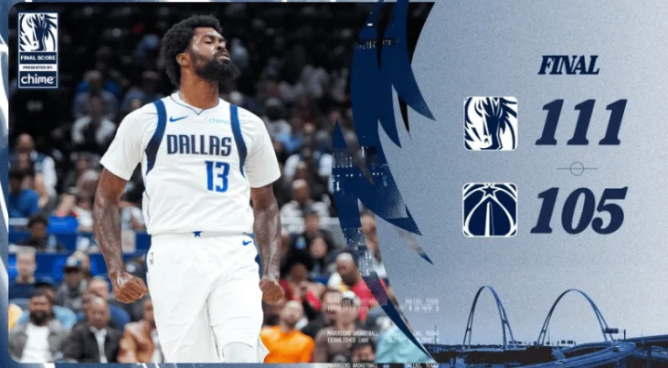 NBA常规赛独行侠客场对阵奇才的比赛已经结束。全场战罢,独行侠以111-105战胜奇才。 此役过后,独行侠终结了自己的四连败,排名暂时反超鹈鹕升至西部第14。 赛后,独行侠官方晒赢球海报:纳吉-马绍尔单人出镜。 本场比赛,独行侠球员纳吉-马绍尔出战31分钟,14投9中,其中三分球4投3中,罚球11投9中,得到30分8篮板2助攻2抢断。