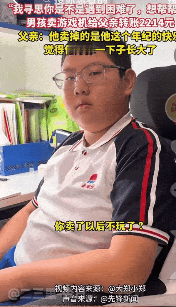近日,吉林,一13岁男孩卖了游戏机给父亲转钱,刚开始父亲以为他在外面惹事赚了不该赚的钱,于是很生气质问他,然后聊天得知原因后,父亲红了眼。 信息来源:先锋新闻 其实,这孩子叫小郑,那台游戏机是他攒了几个月零花钱买来的,平时玩得不要不要的。 可小郑前几天听见爸爸在电话里低声说借钱的事,回家还看到门口贴的催缴单,心里突然不好受,觉得家里好像欠了很多,他想做点啥。 没多想,小郑就偷偷找了个二手交易平台,把心爱的游戏机挂上去。 没想到一会儿就有人问价,顺利卖了两千多块,连手续费都没留,直接转给了爸爸,还给自己留着空空的口袋。 爸爸一开始真懵,以为是孩子在外面惹事赚了不该有的钱,脸色都吓变了,火气上来就训他:“你怎么能自己做主就卖了?!” 可当儿子哽咽着说,“爸,我知道家里有困难,我想帮帮你,游戏我都不要了,以后好好学习”,爸爸那句责怪还没说完,就哽在喉咙里。 过了一会儿,爸爸拍了拍小郑的肩膀,声音都哽咽:“爸知道你懂事,可你现在最重要的事是学习,别太早背负大人世界的烦恼。这钱我替你攒着,先别动,好好读书,将来我给你换新的游戏机,好好放松也行。” 小郑“嗯”了一声,还反过来拍拍爸爸背,“爸,你别难过,我知道您辛苦,我以后学习更用心,想让您心里踏实。” 父子俩就这么相互安慰,屋里弥漫着温暖的气氛。 爸爸出门到走廊里,轻轻擦了擦眼角,“我再也不让你受委屈了”是他心底的暗暗誓言。 网友们看了都说,孩子太懂事既惊喜又心疼:是该骄傲,也是提醒大人别让孩子过早扛重担。 这个故事告诉我们,比高分、学历更珍贵的是那颗愿意为家分担的心,还有在困难面前一家人互相扶持的勇气,真正的亲情,就是甜中带着暖、苦里透着甜。 为小郑的做法点赞,年纪小就会帮父亲分担压力了,真是个好孩子! 有多少小孩在这年纪,还爱慕虚荣,到处和同学相互攀比,但他在父亲遇到资金困难时,感觉一下子长大了,相信他未来可期!