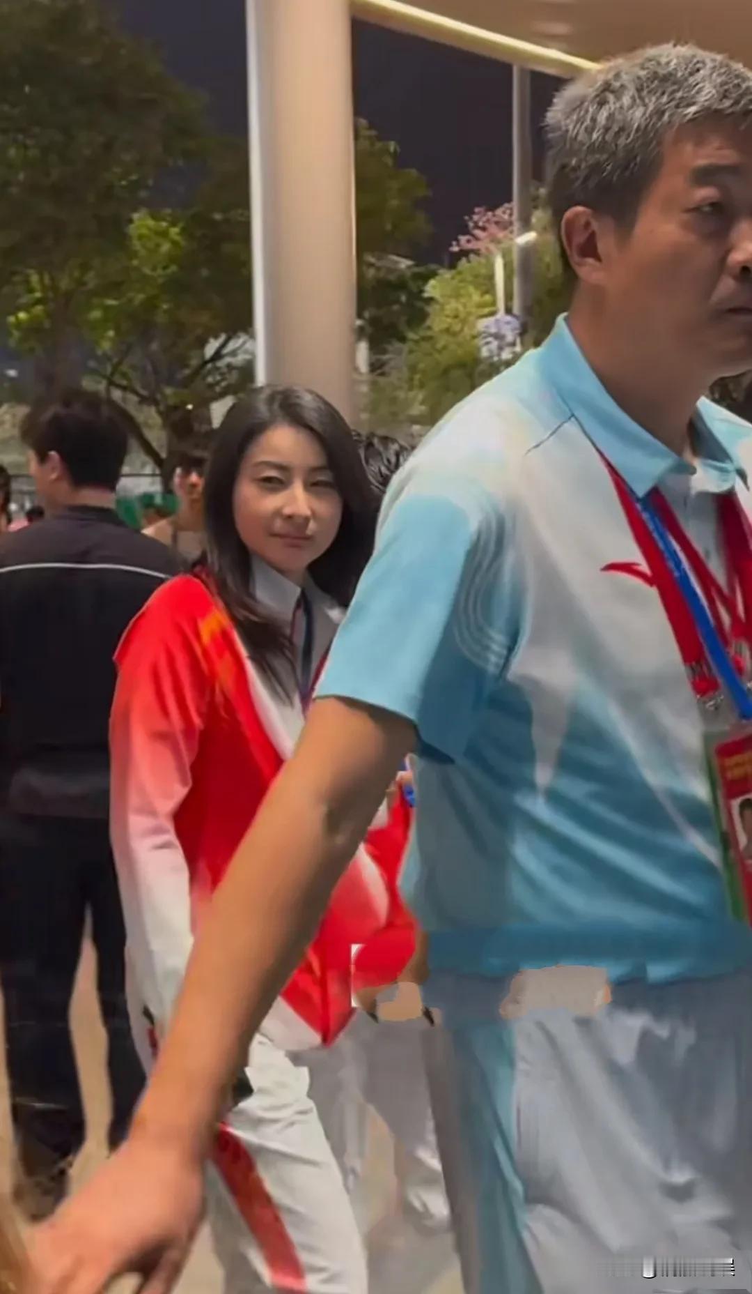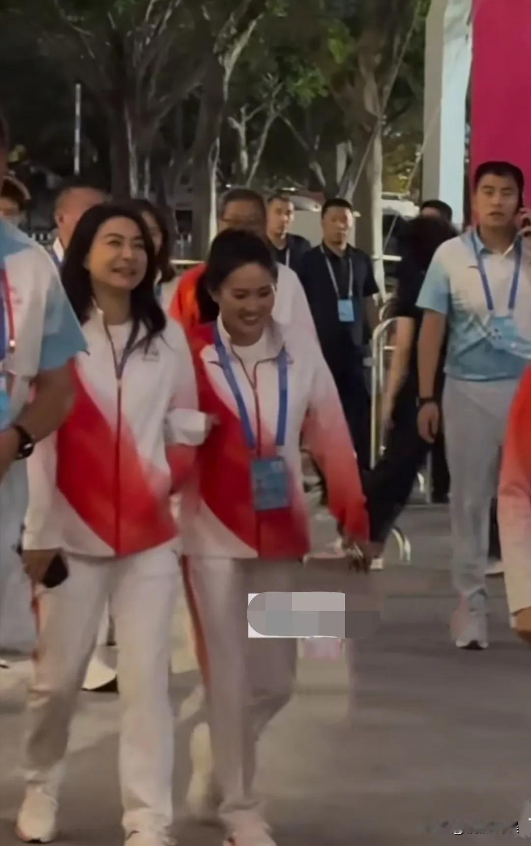 跳水皇后郭晶晶和陈若琳现身全运会开幕式,师姐师妹手牵手进入场地。 俩人都穿着运动服,郭晶晶长发披肩,笑起来眉眼弯弯,陈若琳扎着高马尾,明媚靓丽。俩人一边说一边走,看起来心情颇好,笑容满面! 话说她们还是穿运动服好看啊,简单的装扮,就英姿飒爽,又美又酷。 不知道全红婵今晚会不会来,要是来就好了,就可以跟师傅师姐见面了。不仅可以取取经,尽快度过这个难关,还可以收到师姐们的鼓励和关怀,收获无数信心!