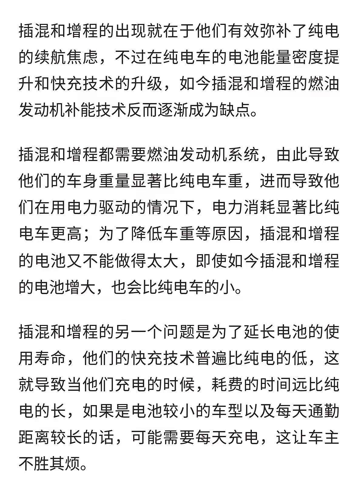 全国10%纯电车主后悔没买增程,90%增程车主后悔没买纯电,买车第一步就可能把车变成累赘 在很多人眼里,增程才是“完美解法”:可油可电,跑得远、没焦虑,怎么看都比纯电“稳妥”。但现实就是这么讽刺:不少人用了一段时间后,反而后悔没直接上纯电。 说白了,就是“没有对比就没有伤害”你用电的时候,百公里不到15块,便宜、安静、顺滑,开着特舒服;可一用油,百公里五六十,顿挫感、发动机噪音统统来了——还贵了一大截,这其中省下来的费用,下趟饭馆,或者买点吃的,它不香吗? 凡买了增程车的都后悔了,不是在充电,就是在充电的路上。【来自懂车帝车友圈】