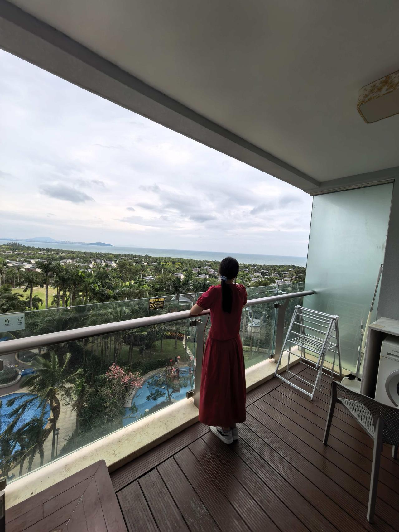 这张图是我最近去三亚旅行拍的。 我站在三亚唯一的七星级别酒店的隔壁的酒店的一个房间的小阳台上。 七星级酒店一晚上淡季也要九百多块钱。 我舍不得住。 就选了它的隔壁,我来的时间好,属于淡季。 找到了海景房,不过房费不便宜,一个晚上快赶上三百块了。 不过这房间很好,两个房间,白天能看见海,晚上能听见海浪声。微风吹进房间舒服极了。 不过唯一不好的是,那天是阴天,天空有点暗,没拍出它的美。 自从去过三亚后,我和帅哥说:“我们多努力努力,下次来三亚,我们住隔壁。” 也不知道下次是多久,能不能住上七星酒店? 还是得努力工作啊! 如果是你们会舍得住一晚上九百多的酒店吗?