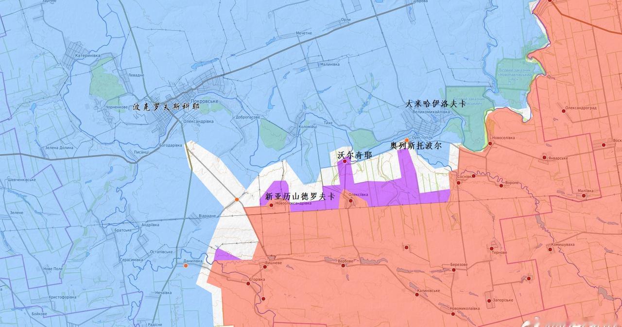 更新11.3-9俄乌冲突战线变化: 1. 沃尔昌斯克 方向,除了城内的新进展,俄军还在城东向 泽比诺 推进。目前沃尔昌斯克 市区仅剩东南部平房区为乌控; 2. 大布尔卢克 方向,俄军开始拉平边境线一带,逼近 德武列昌斯科耶; 3. 库皮扬斯克 方向,俄军在 奥斯科尔河 两岸的城区均取得了进展,在河东,“扎奥斯科利耶”区战斗打响; 4. 红利曼 方向,本周俄军推进放缓,仅在 亚罗瓦亚 以西和 斯塔夫基 内取得进展; 5. 塞弗尔斯克 方向,俄军继续扩大 兹瓦诺夫卡 的控制区,并在 塞弗尔斯克 东侧野地前进; 6. 康斯坦丁诺夫卡 方向,俄军进入 伊万诺波利耶 中部,同时持续深入康城东南城区。最近,越来越多的视频指明,俄军在该城东南有一定规模的存在。然而,考虑到针对该城的包围工作尚未展开,对市区外围的清理亦未完成,我们暂认为东南城区为“灰色地带”; 7. 红军城 方向,俄军攻占 罗金斯科耶 后,乌军正持续反攻该镇中心高层建筑群,期望夺回该地,进而给 季米特洛夫 解围。目前,该镇中心部分街区是灰区,乌军达成上述目标为时尚早。 在 红军城-季米特洛夫 包围圈内,俄军不断压缩乌守军空间,苏赫亚尔、罗夫诺耶 两村战斗已开始。目前暂未收到包围圈南北俄军会师的消息。 双子城外围,俄军从南、东两个方向逼近 格里希诺,科特林诺、乌达奇诺耶 两地以北的俄控区也正在扩大; 8. 新巴甫洛夫卡 方向,90师加大进攻力度,在定居点南部站稳脚跟; 9. 大米哈伊洛夫卡 方向,俄军占领 沃尔奇耶,攻入 奥列斯托波尔,并派出DRG渗透到 波克罗夫斯科耶 东南; 10. 乌斯佩诺夫卡 方向,“远东快车”占领了这个定居点,升起🇷🇺。扬丘尔河 西岸战斗全面打响,他们已经拿下了 雷布诺耶,攻入 斯拉德科耶 和 诺沃耶,控制了 新乌斯佩诺夫斯科耶; 11. 斯捷普诺戈尔斯克 方向,俄军抵达 普里莫尔斯科耶 中部; 12. 赫尔松 方向,俄军在某不知名小岛上扩大控制区。 [吐舌]