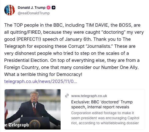 美国总统特朗普再一次指责BBC——(英国广播公司)《每日电讯报》(英国媒体) fake news(假新闻)!