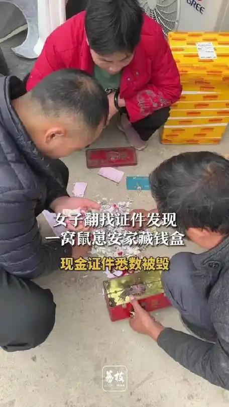 老鼠也爱财。一窝老鼠安家在户主的钱盒子里,把现金和证件咬成渣! 前不久,安徽亳州的张女士。拿出家里存放钱款、和证件的钱盒子,翻找有关证件。 在盒子里,发现了一窝鼠崽,在里面安了家! 令张女士心疼不已的是,盒子里的证件和现金,都已经被咬得稀碎了! 张女士表示,这个钱盒子放在这里已经好几年了。老鼠在里面生育了有5只幼崽。由于现金被咬得太碎,已经无法兑现了……