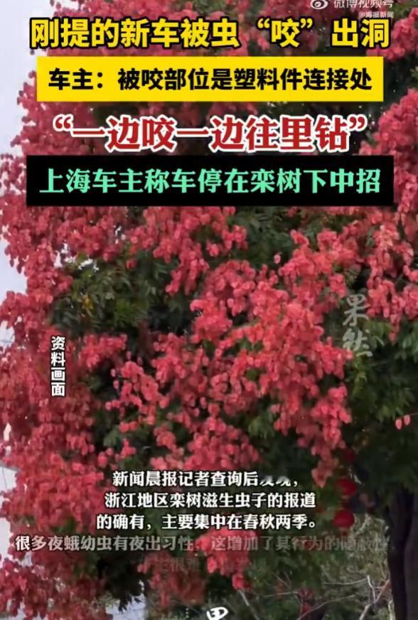 “无妄之灾!”11月10日报道,浙江嘉兴,一位车主新提的爱车停在栾树下,没过多久前保险杠等塑料部件上就出现了细小的孔洞,旁边还附着一些褐棕色、带绒毛状细脚的虫子,车主将照片发到网上,怀疑是这些虫子啃咬了车辆,网友:以后停车要注意。[得意] 春秋季节确有不少车主反映,停在栾树下的车辆容易沾染虫害,不仅影响美观,严重时还可能留下损伤。 栾树在春秋季容易滋生蚜虫、刺蛾等害虫,尤其夜蛾幼虫具有昼伏夜出的习性,不易被察觉。而天牛幼虫、蟋蟀这类昆虫,本身就具备发达的咀嚼式口器,有能力啃食植物枝干,甚至塑料等较硬材质。 虽然没有权威机构鉴定过具体是哪种昆虫“作案”,但多位车主的相似遭遇,确实提醒我们注意停车环境的选择。 最直接的办法是停车时尽量避开栾树,如果无法避免,建议定期检查车身塑料部件和缝隙,发现虫卵或蛀痕立即清理。 必要时可使用防虫喷雾,但要注意选择对车漆和塑料无害的产品,并提前在不显眼处试用,长期停放车辆,首选室内停车场,若停放在室外,不妨使用车衣全面覆盖,阻隔虫害。 不同树种虫害风险确有差异,栾树因易生蚜虫,会分泌蜜露,容易诱发煤污病,并吸引蚂蚁、蜂类等昆虫聚集,间接增加周边环境中的昆虫密度。 新闻一出,可把网友们忙坏了,评论区瞬间成了大型经验交流会和“受害者”吐槽现场。 “我就是嘉兴的,去年新车前挡风玻璃下面的塑料格栅就被咬了,修一下花了小一千,心疼死了!现在停车看见栾树真的绕道走。” “光是看到文字描述我鸡皮疙瘩都起来了,最怕这种多脚的虫子,还得是钻进车里的,有画面感了……” “看来不是我的错觉!我就说以前停栾树下,车上老是有一层黏糊糊的东西,原来是虫子的分泌物啊,这下破案了。” “专家说还没确定是哪种虫,我觉得挺严谨的,不然大家都去怪夜蛾,万一冤枉了‘好虫’呢?” “坐标山东,我们这的栾树底下也一样,不光车,晾出去的衣服有时候都能被滴上那种粘液,烦得很。” “这跟车的质量有没有关系?是不是某些品牌的塑料用的材料比较招虫子啊?有没有懂行的出来说说?” “防虫喷雾有用吗?求推荐一款不伤车漆的,在线等,挺急的!” “我有个笨办法但挺有效:长期不开的话,搞个车衣罩上,一劳永逸,就是收和盖有点麻烦。” “评论里都是说虫子的,只有我关心树吗?栾树秋天挺好看的呀,难道以后因为虫子都要砍掉吗?这也太可惜了。” “楼上+1,栾树本身也是‘受害者’啊,是那些害虫的问题,应该加强园林养护和病虫害防治,而不是简单怪树。” “学到了,以后停车不光要看有没有禁停标志,还得抬头看看是什么树,当代车主真不容易。” “我刚提的车,看完这篇赶紧跑下楼看了看,还好没事……谢谢楼主提醒,真是及时雨!” 除了避开栾树,你在停车时还有哪些独家秘笈,可以有效避免鸟粪、树胶、虫子之类的“隐形杀手”呢?快来评论区分享你的停车保命攻略吧! 信源:海报新闻