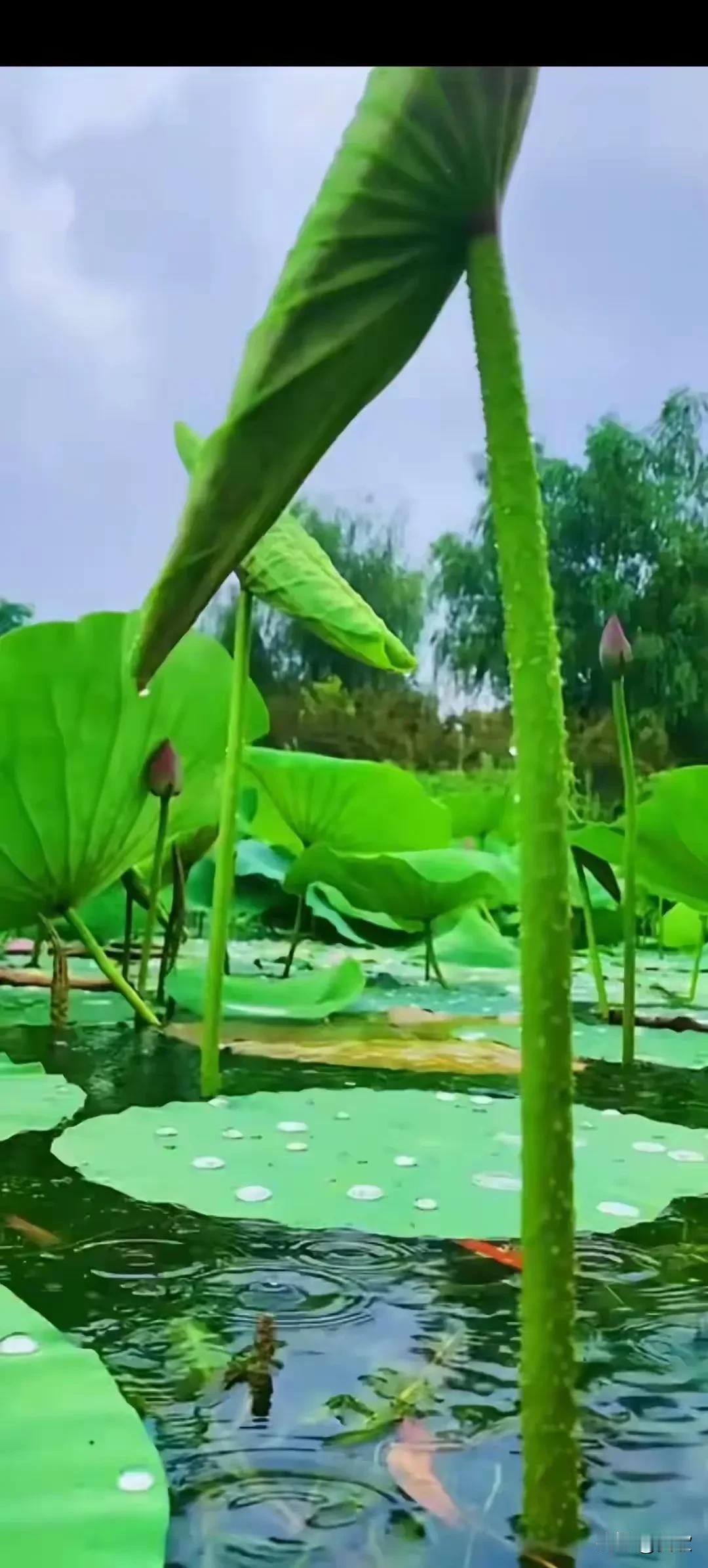 上联:荷承夏雨擎翠伞 下联:藕沐秋风卧玉床 横批:荷塘清趣