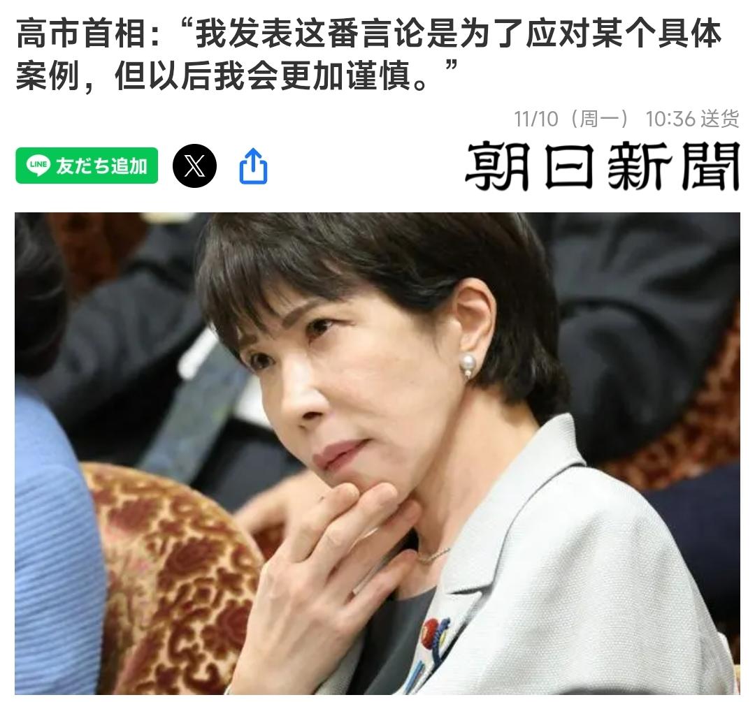 11月10号,在日本众议院预算委员会的审议当中,高市早苗再次针对台海危机作出了表态,软化了之前的态度。某种程度上也是为昨天中国驻大阪总领事薛剑所引发的一系列舆论争议,试图画上一个终止符。 高市早苗在今天的发言当中强调,她不会撤回7号的发言,但未来“将会避免在国会的场合,就具体情况发表明确声明”。议员继续追问,这是否意味着日本将要发动战争?高市早苗表示,她无意将11月7号与议员交流的内容作为政府的统一立场,等于是技巧性地回避了这个议题。 可以说,高市早苗前几天的发言的确引发了不小的争议。尤其是昨天薛总领事关于“砍掉脑袋”的发言,在日本舆论场上可谓是引发了轩然大波,今天不仅登上了日本的热搜,连内阁官房长官都出面表达不满,甚至有日本议员要求对其进行驱逐。因此,高市早苗今天的软化姿态,恐怕也是希望替这件事画上一个尾声,不希望在舆论层面继续炒作。 与此同时,中国驻日本的吴江浩大使也发了一条推文,不点名地对高市前几天的讲话做了批评,同时也再一次明确地表达了中国在台湾问题上的立场。因此,中方似乎也不希望这次舆论冲突继续炒作下去。 不过在高市早苗任职期间,台湾问题恐怕始终会成为一个潜在的引爆点。在未来的日本国会审议当中,恐怕不断地会有议员向高市提出此类问题,也难保她不会再有此类出格的言论。但无论如何,这都是我们政策的底线和红线,当遇到此类挑衅的时候,只有坚守立场和维护我们的国家利益。