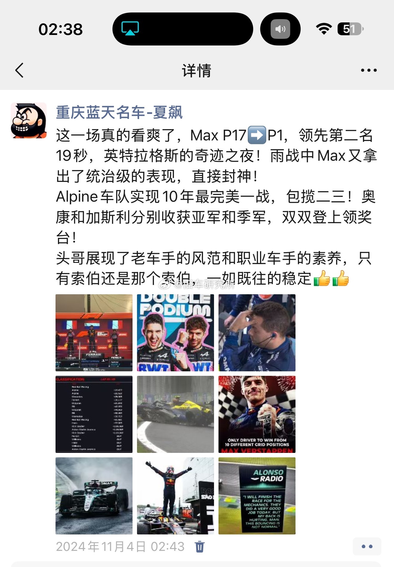 去年的圣保罗P17➡️P1🥇,这一场PIT LANE ➡️P3 🥉F1[超话]