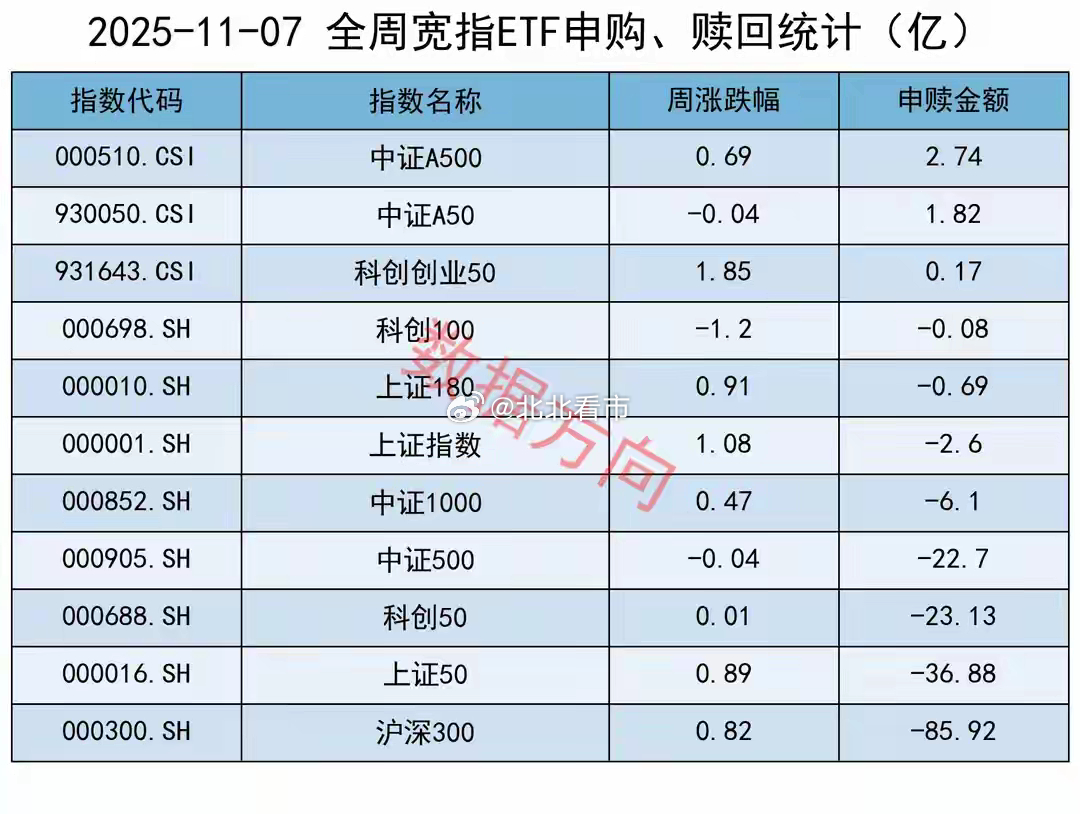 沪深300指数,全周净赎回85.92亿,很久没见过这么大的净赎回金额了。