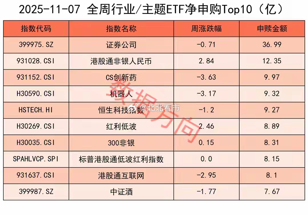 证券公司、港股通非银人民币、300非银,本周分别获得36.99亿、12.35亿和8.31亿净申购,合计57.65亿