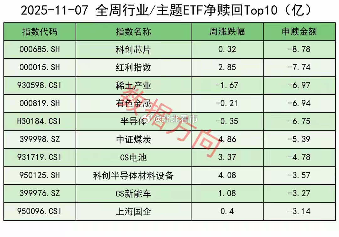 稀土产业、有色金属、中证煤炭,本周分别净赎回6.97亿、6.94亿和5.39亿。