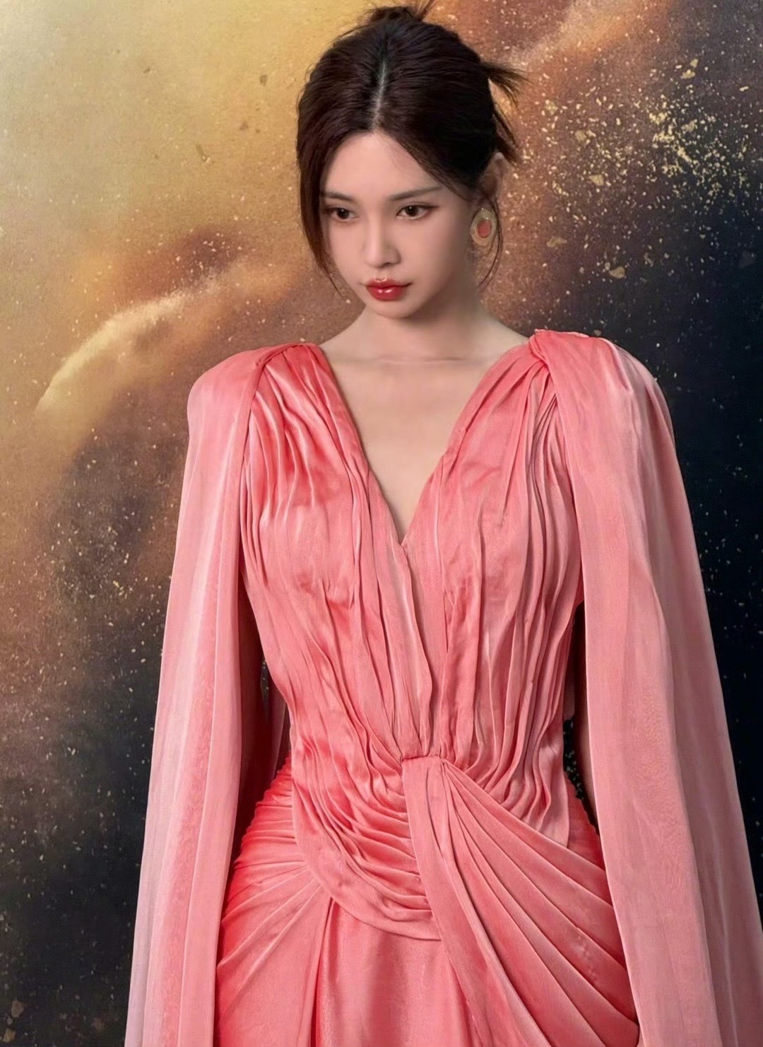 刘亦菲把死亡玫粉穿出了定制款的感觉,这种颜色普通人穿上分分钟黑三度,她居然能穿出