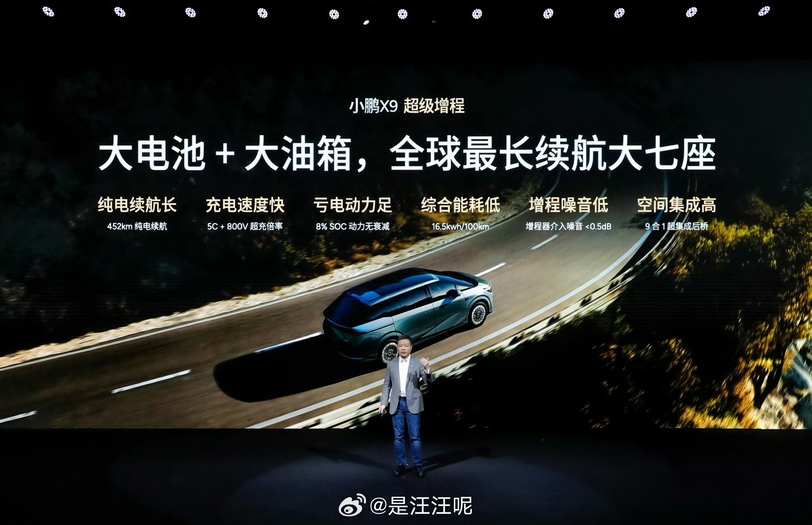 小鹏X9超级增程太强了,1602公里CLTC综合续航+452公里纯电续航,直接把