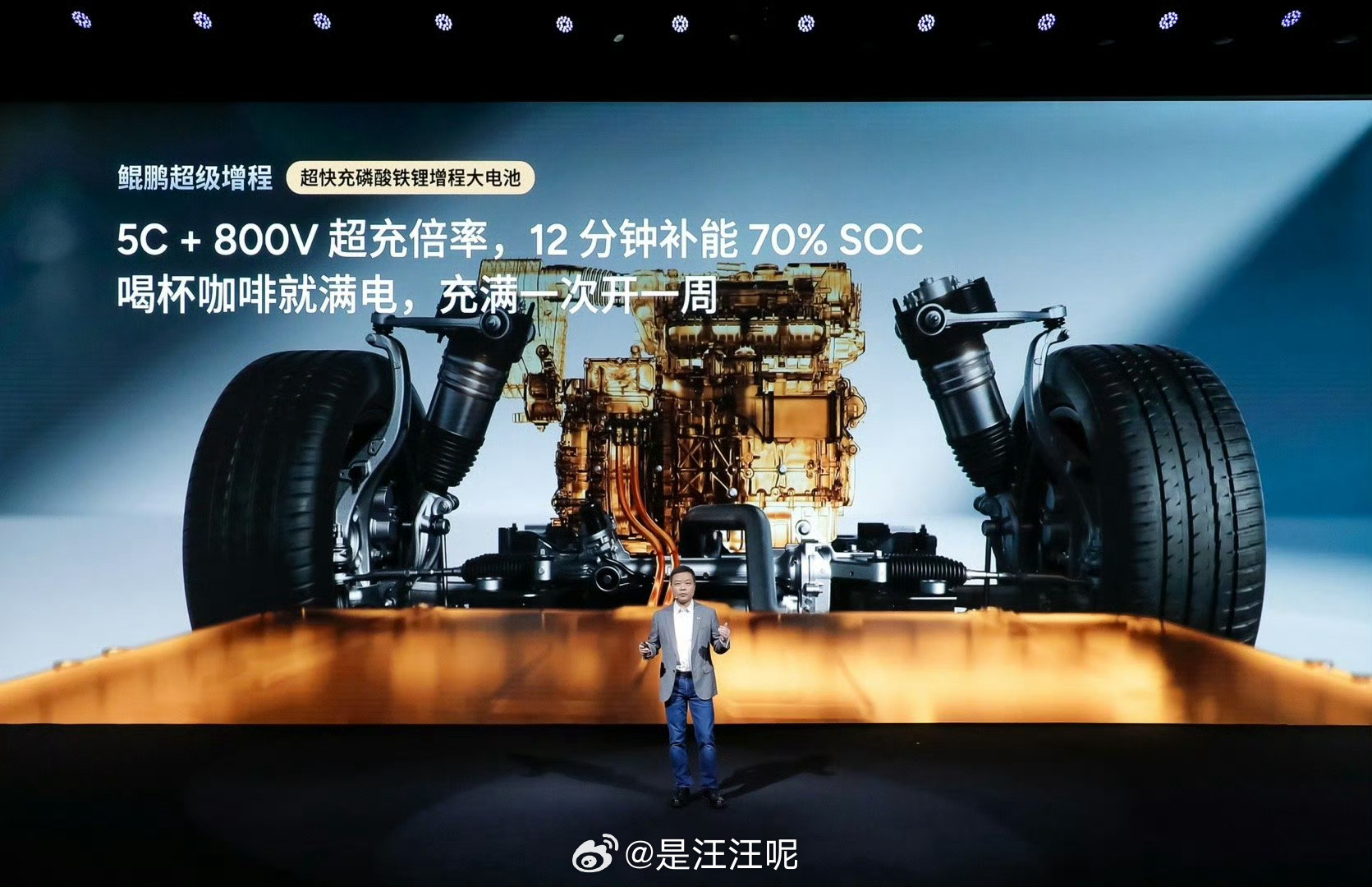 鲲鹏超级增程配全球唯一超快充磷酸铁锂大电池,5C+800V超充10分钟补能313km,喝杯咖啡的功夫,一周通勤电就满了,还提前达标2026电池新国标,24小时热失控不起火,安全感拉满。
