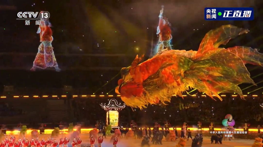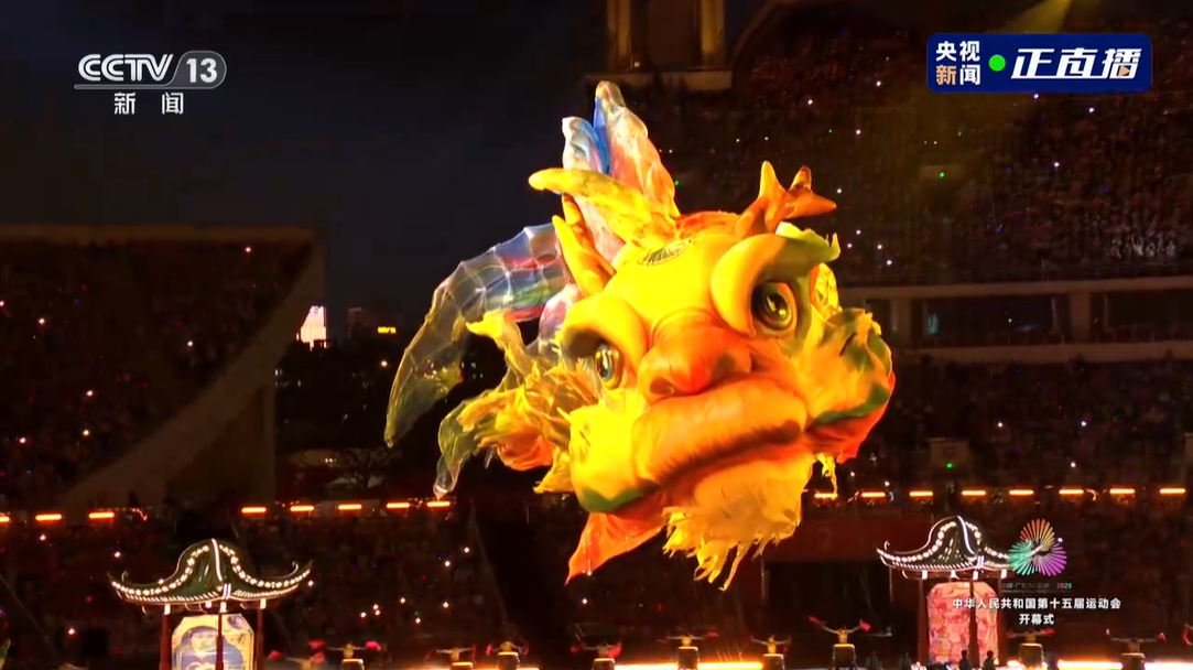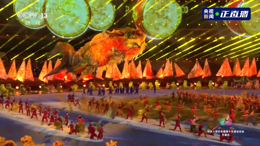 【十五运开幕式看得我眼前一亮又一亮[憧憬]】全运会开幕式的巨型鳌鱼好震撼 第十五届全国运动会开幕式11月9日晚在广东奥林匹克体育中心举行。中华武术、岭南戏曲、舞狮表演、水上英歌舞接连上演,还有巨大的鳌鱼从空中飞过~真的太精彩了! 微观全运会