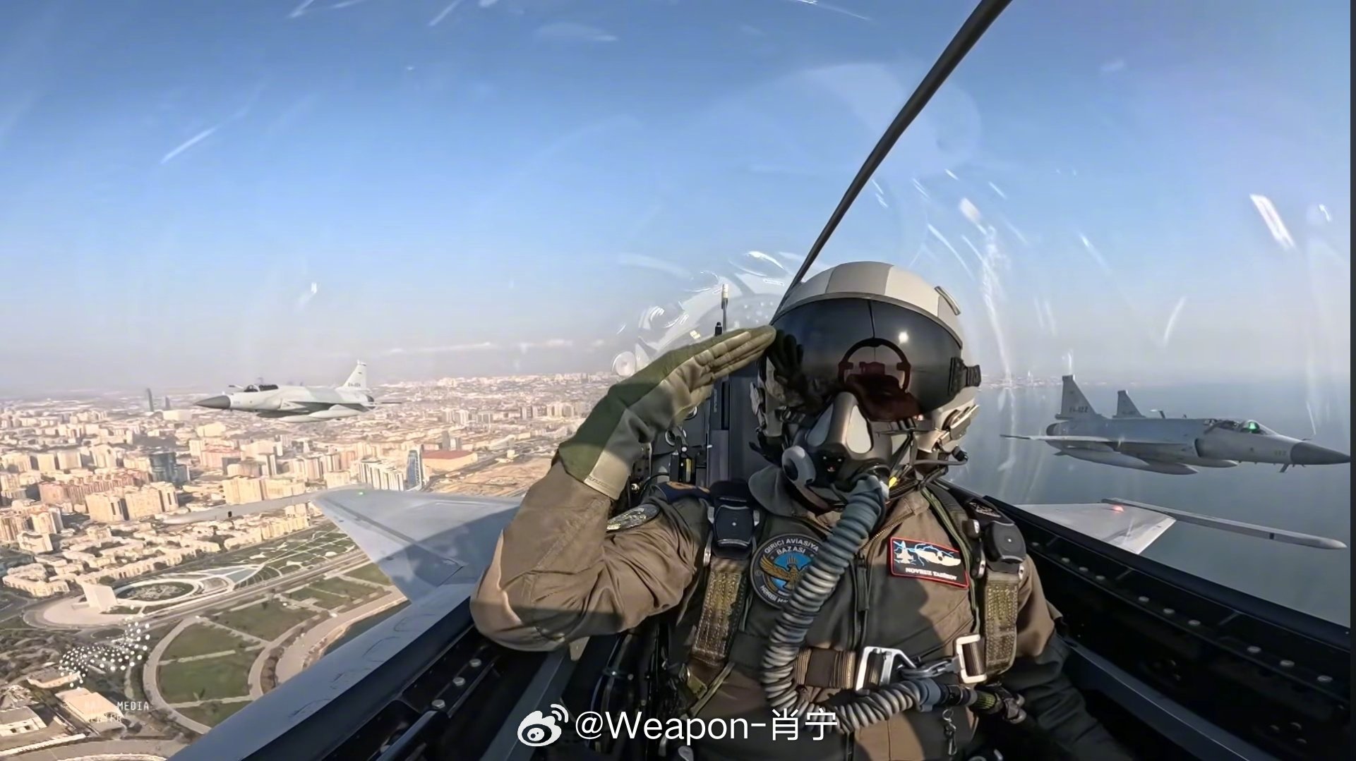 兵器影像[超话] 阿塞拜疆空军飞行员驾驶JF-17C战斗机参加巴库胜利阅兵式。