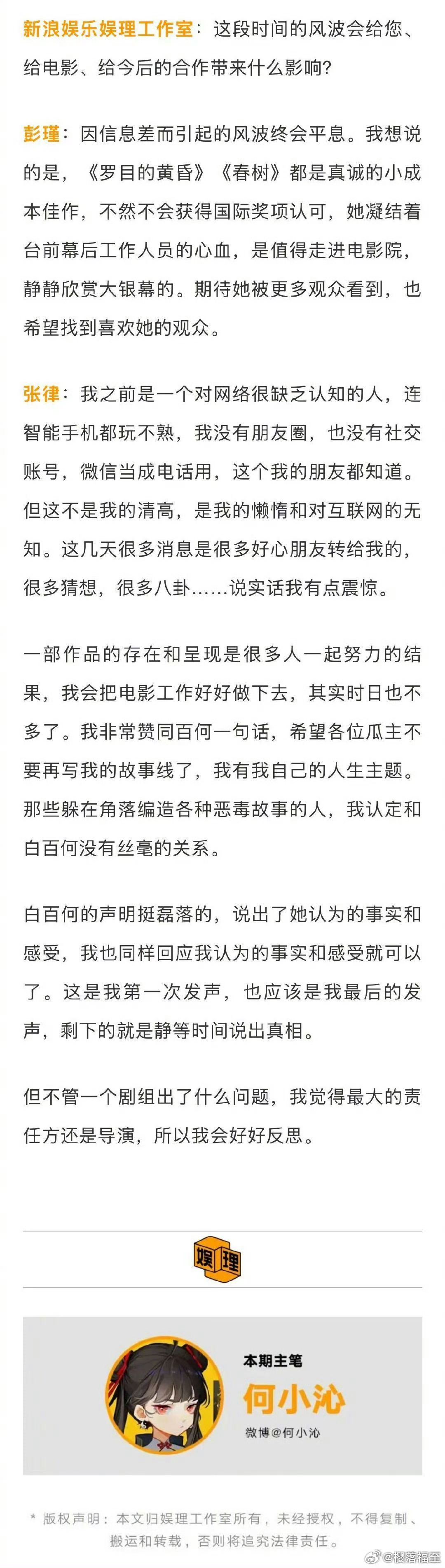 白百何闹这一出,倒让我知道了张律导演且对他生出了无限好感。