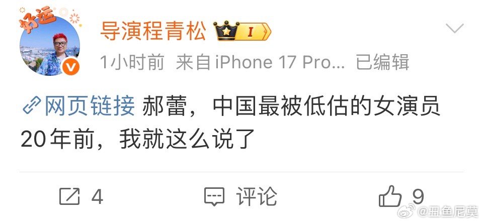 程青松发文称,郝蕾是中国最被低估的女演员。程青松20年前就这么说过写过。