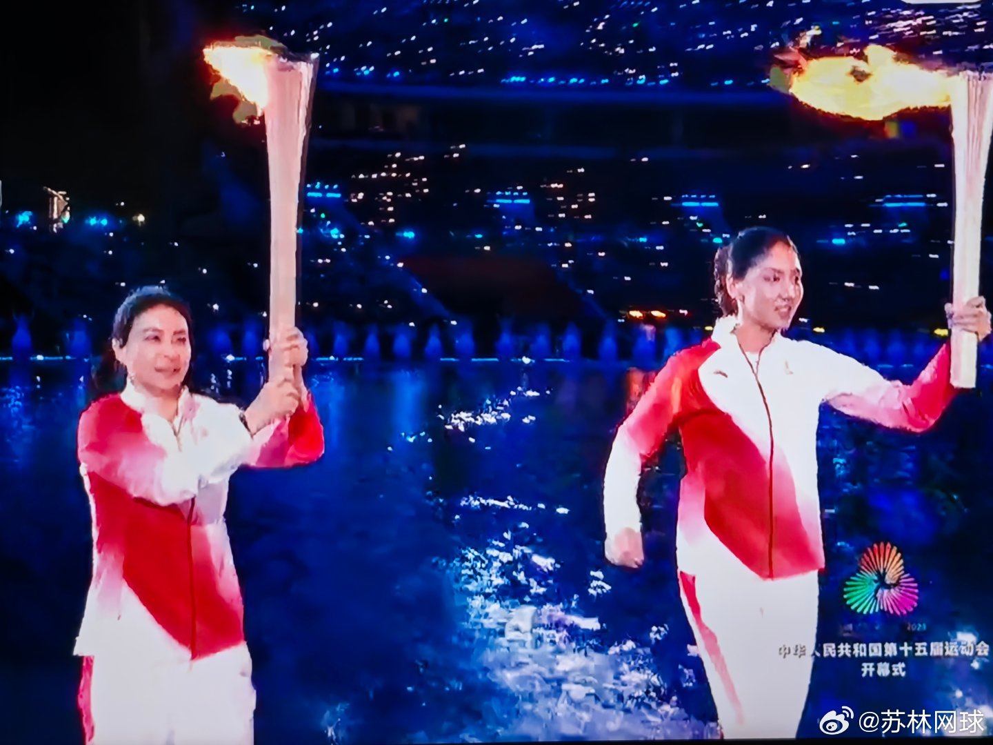 王欣瑜和郭晶晶第三棒场内火炬手。