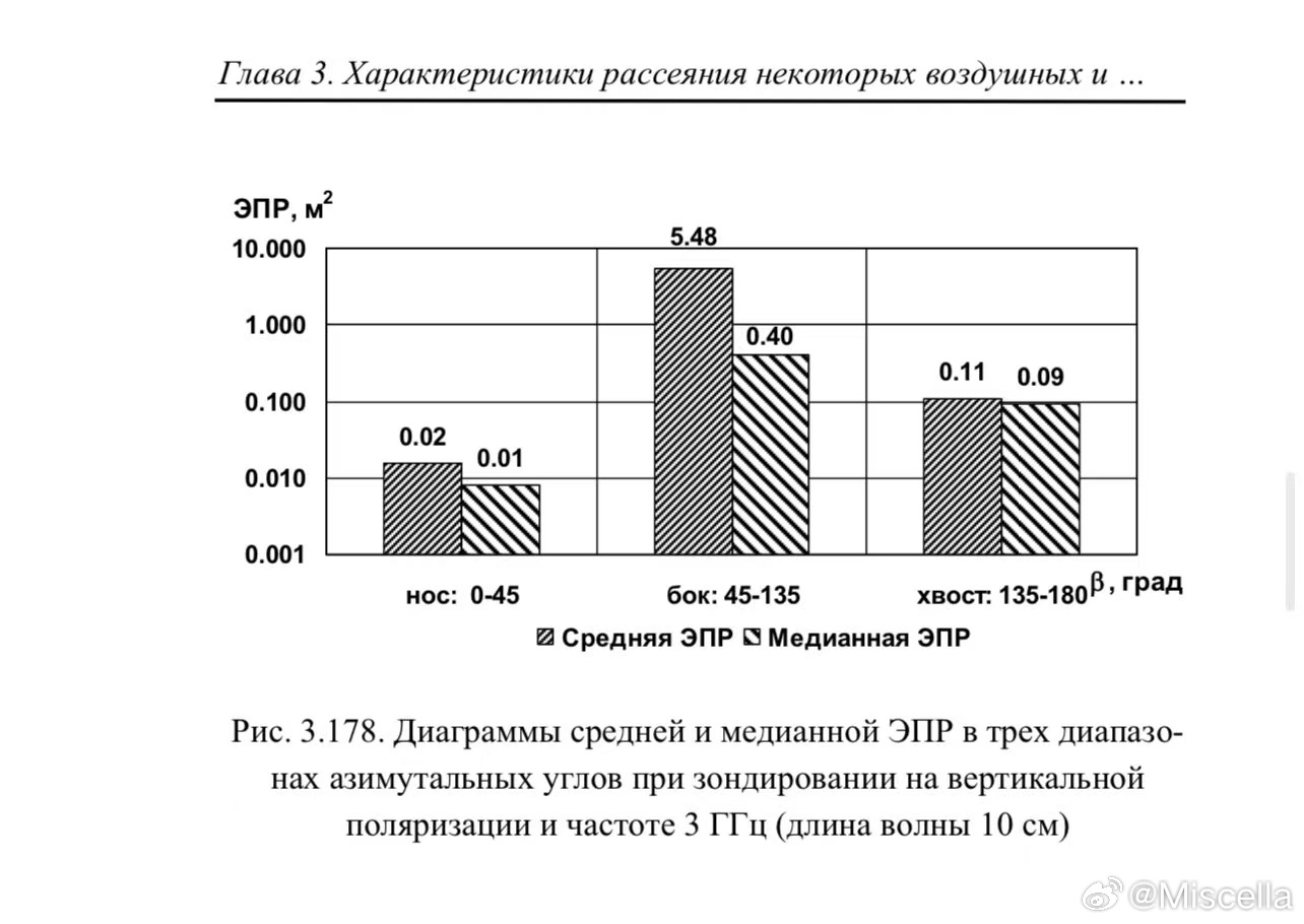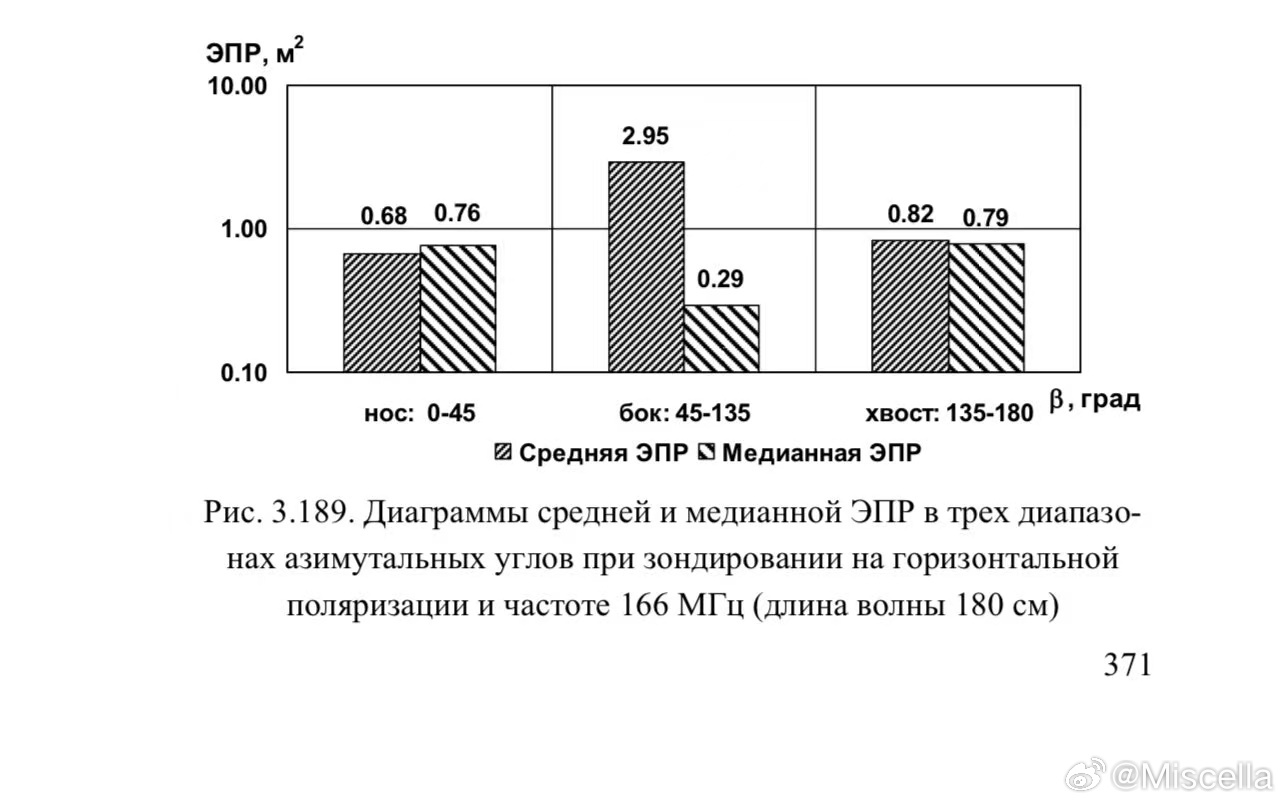 一般来说VHF(P)波段被大型地面雷达使用,如冷战时期的一些二坐标远程警戒雷达。X波段是机载火控雷达常用波段,S波段是机载预警雷达常用波段。对于这两个波段的雷达,0.01的最小RCS、0.02的平均RCS对探测距离还是有较大影响的,约是3平米目标的三分之一到四分之一 。