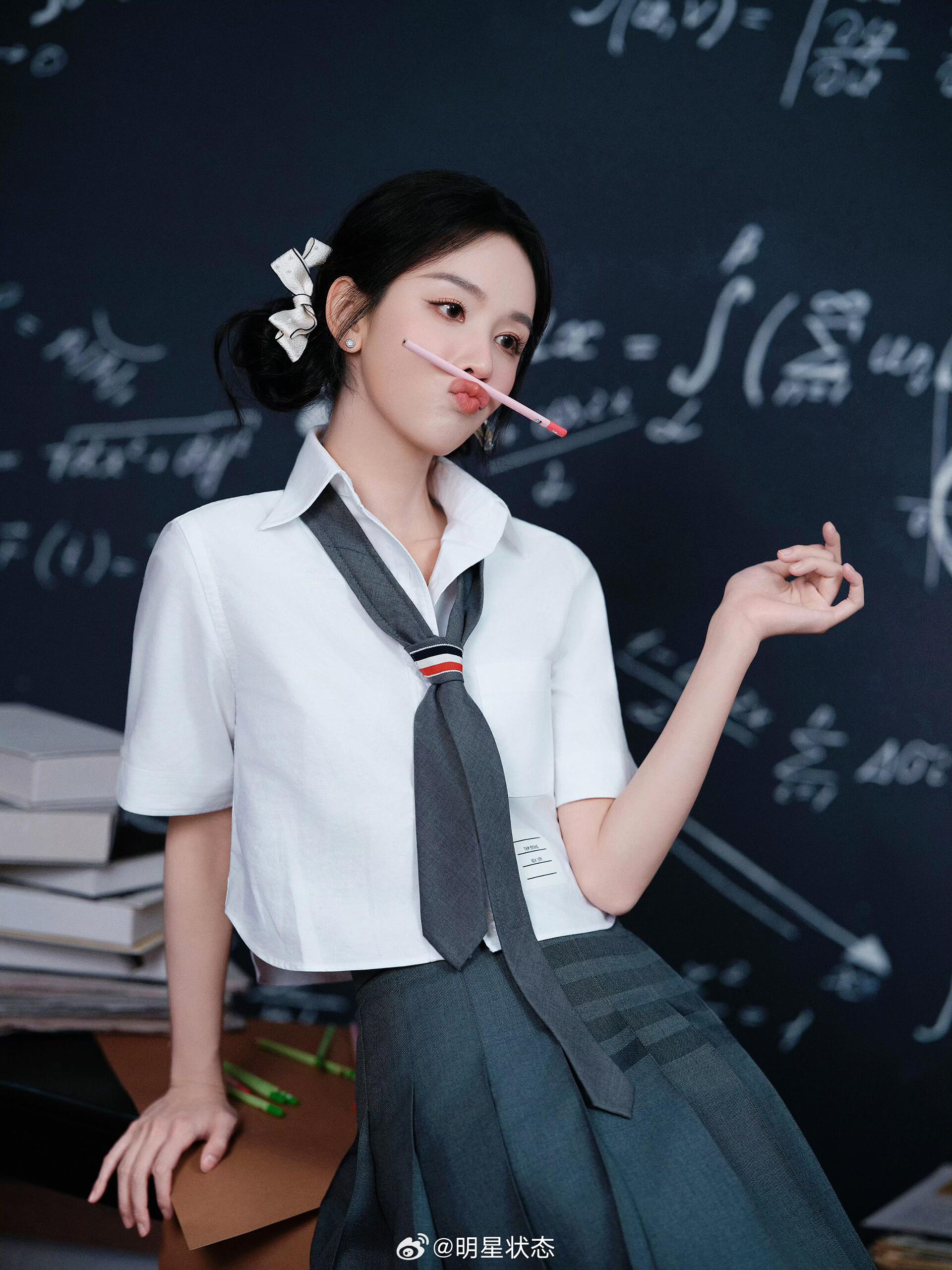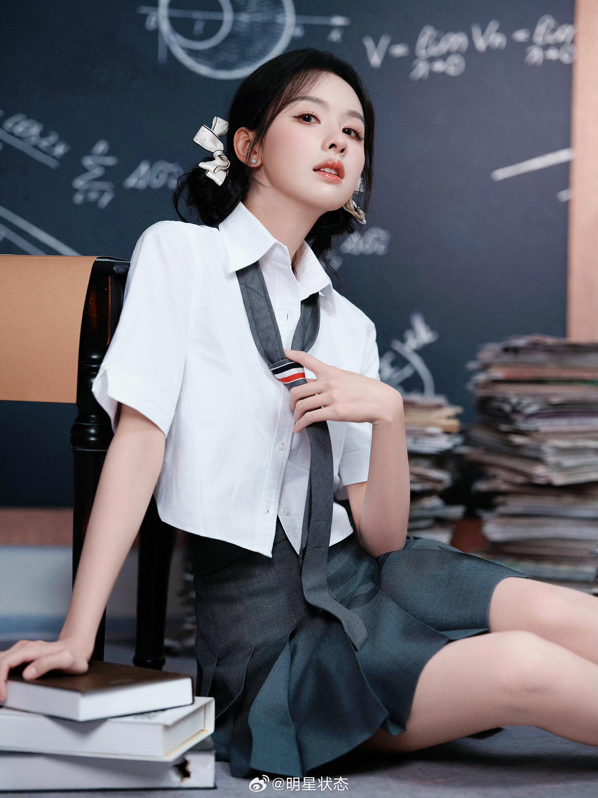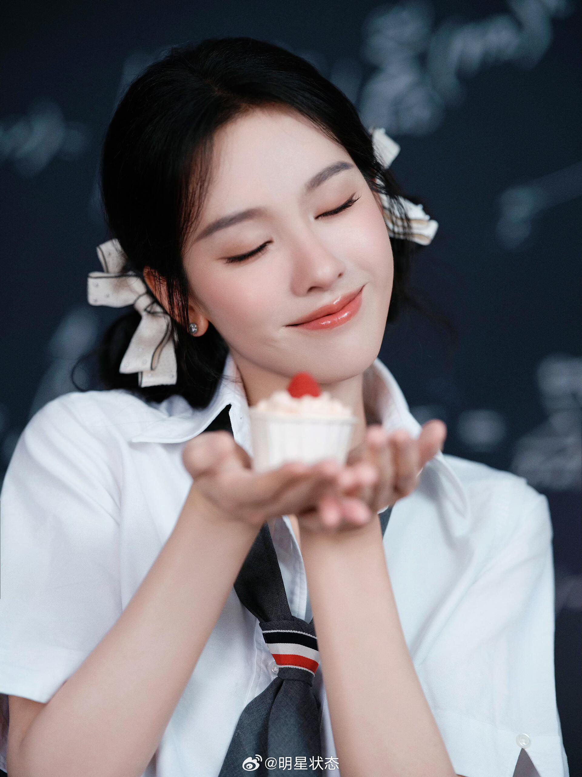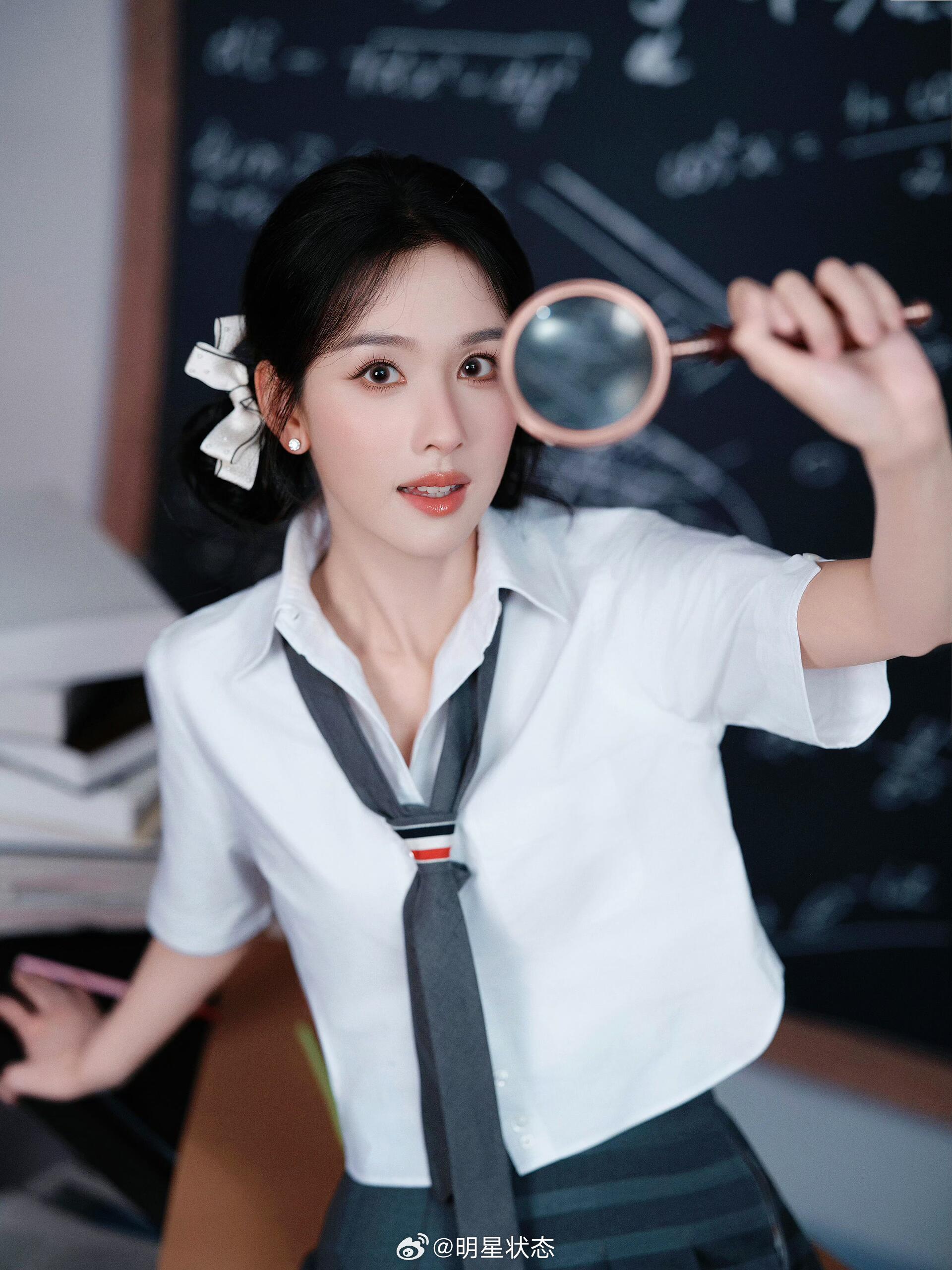嘟嘟这套造型把“学院风甜度”拉满了!