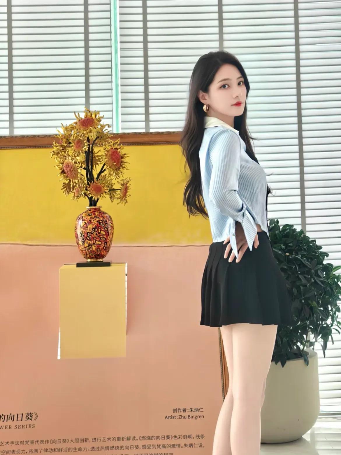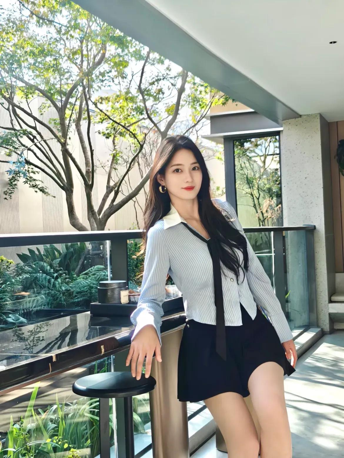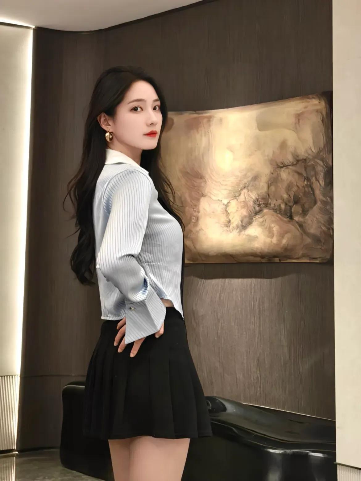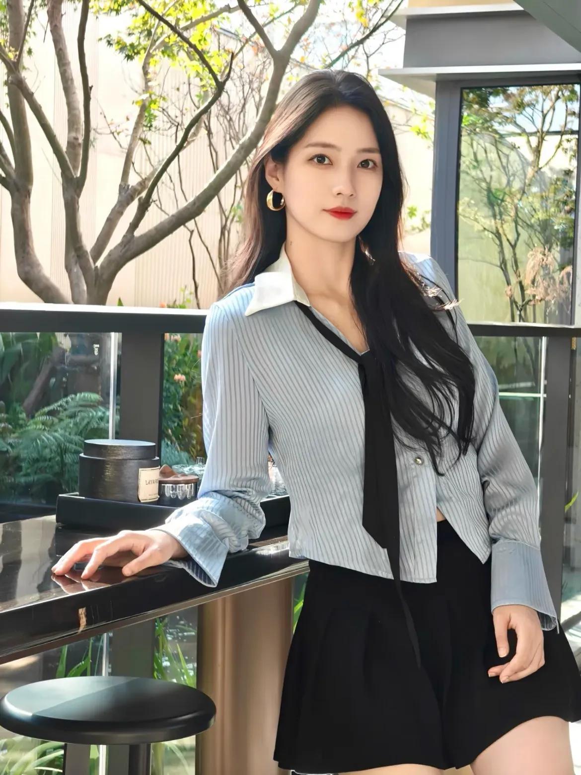 优雅气质穿搭,条纹衬衫搭配黑色短裙,时尚又迷人!💃🏻✨