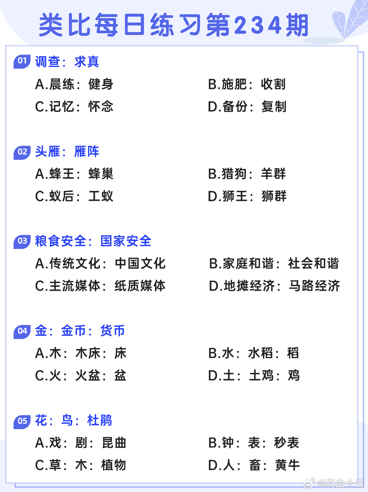 图推类比每日练习第230期图推难度:☆☆类比难度:☆☆开学元气加油站决战公考省考
