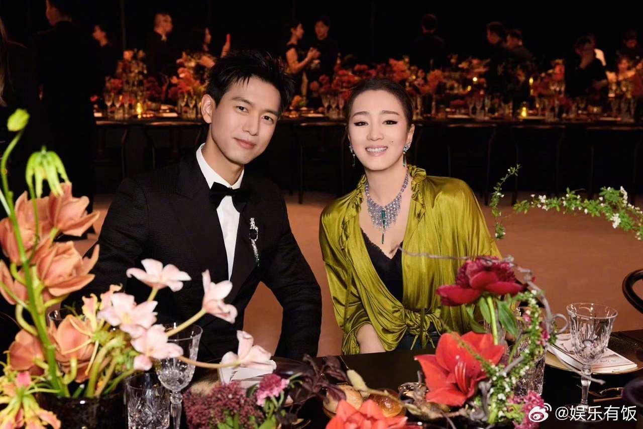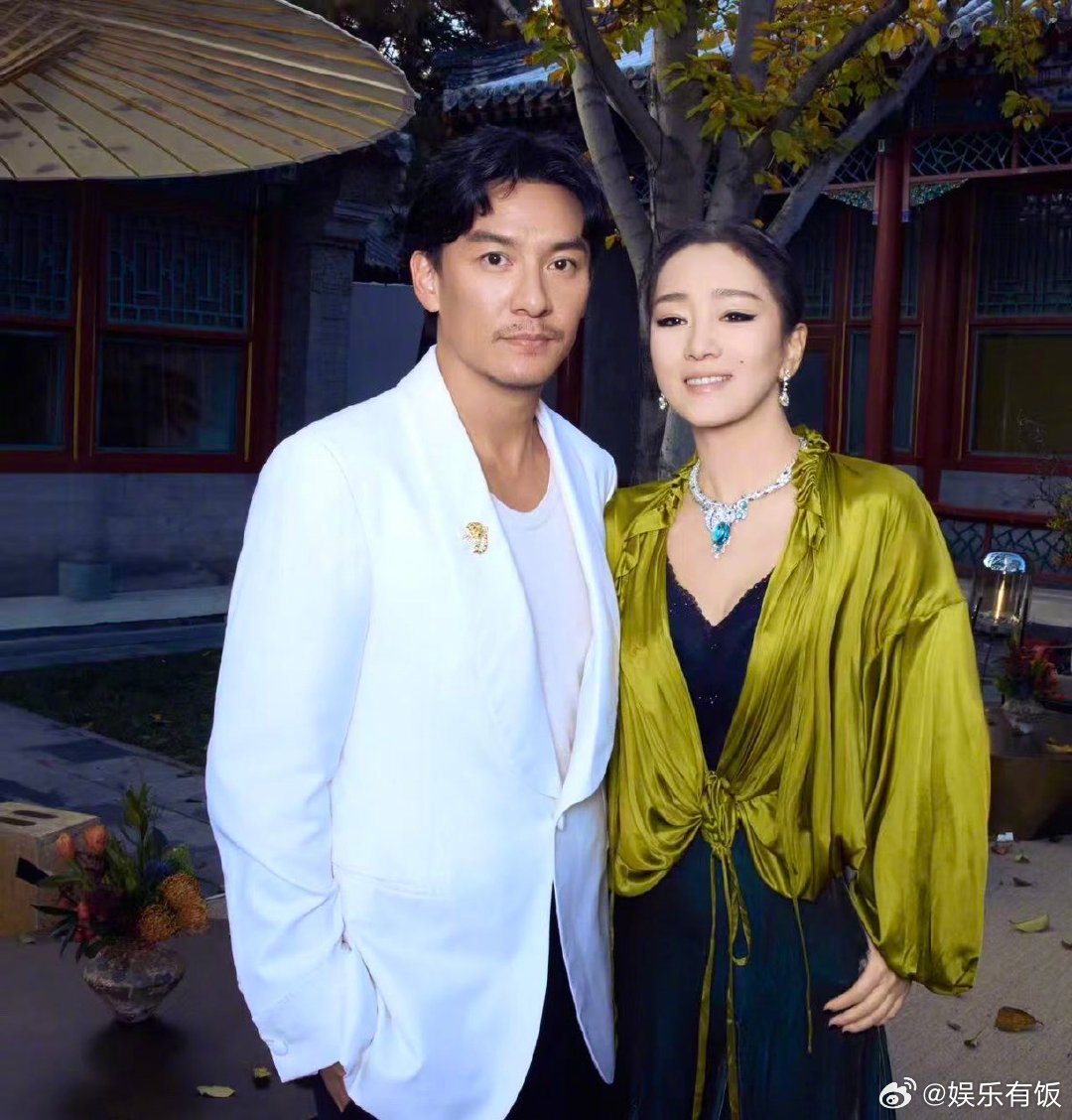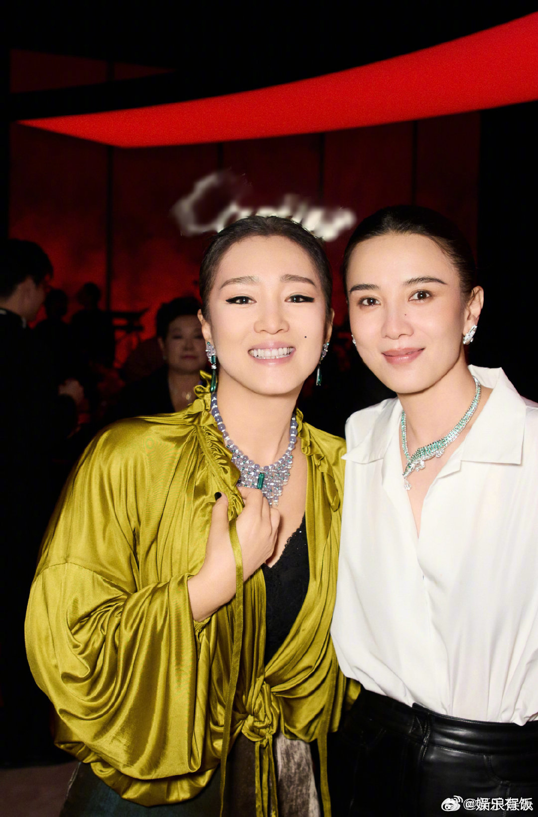 巩俐大花气场巩俐合照主理人近日,巩俐一袭墨绿色长裙配丝绸外套亮相时尚活动,低盘