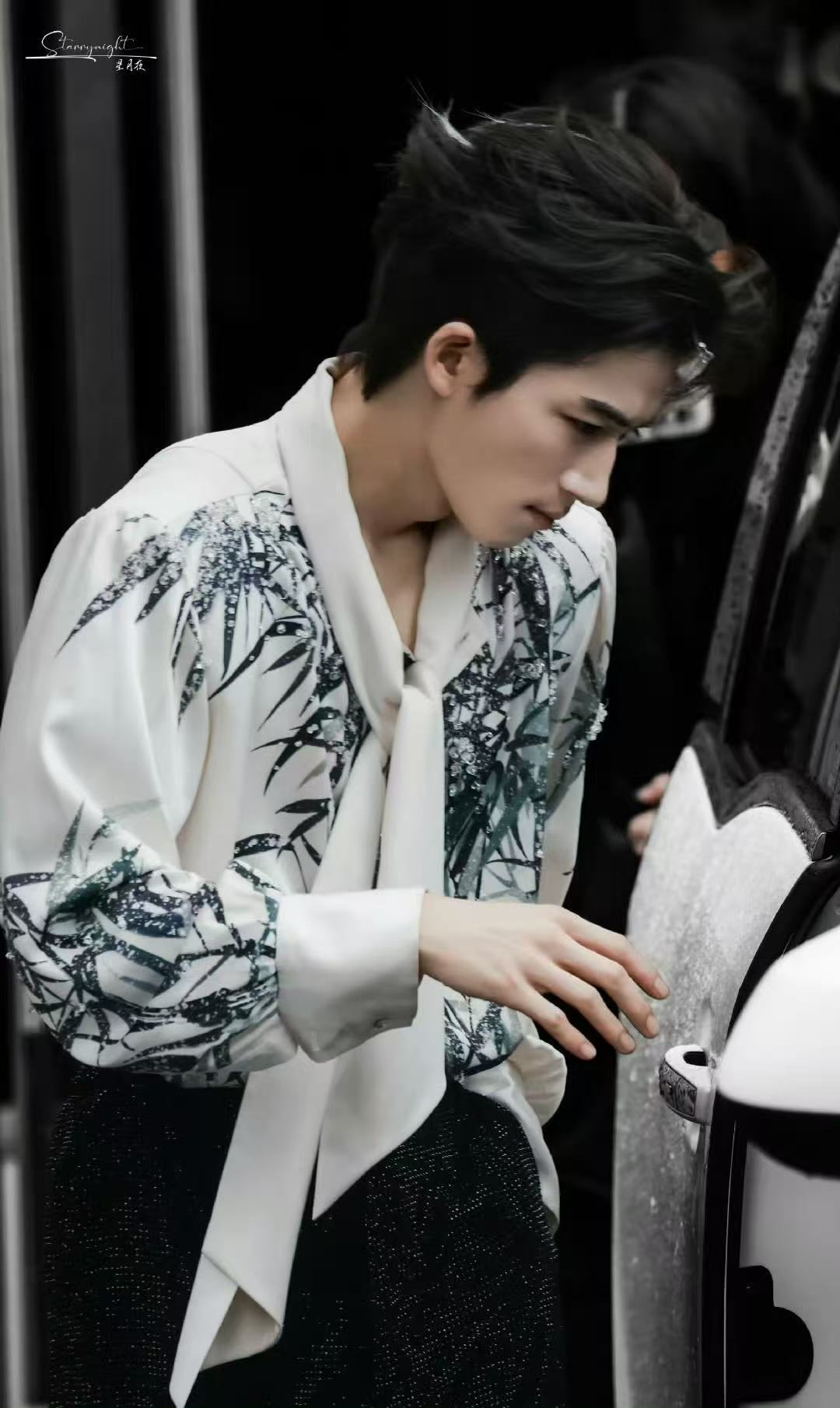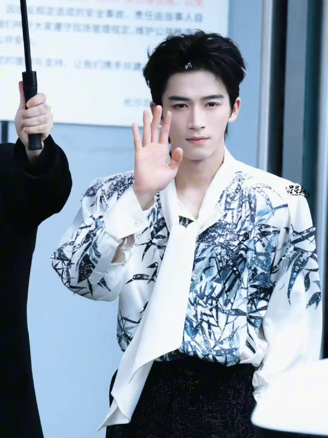 王星越挑染水墨风衬衫 王星越今日上班穿搭来啦!妥妥国风美少年!