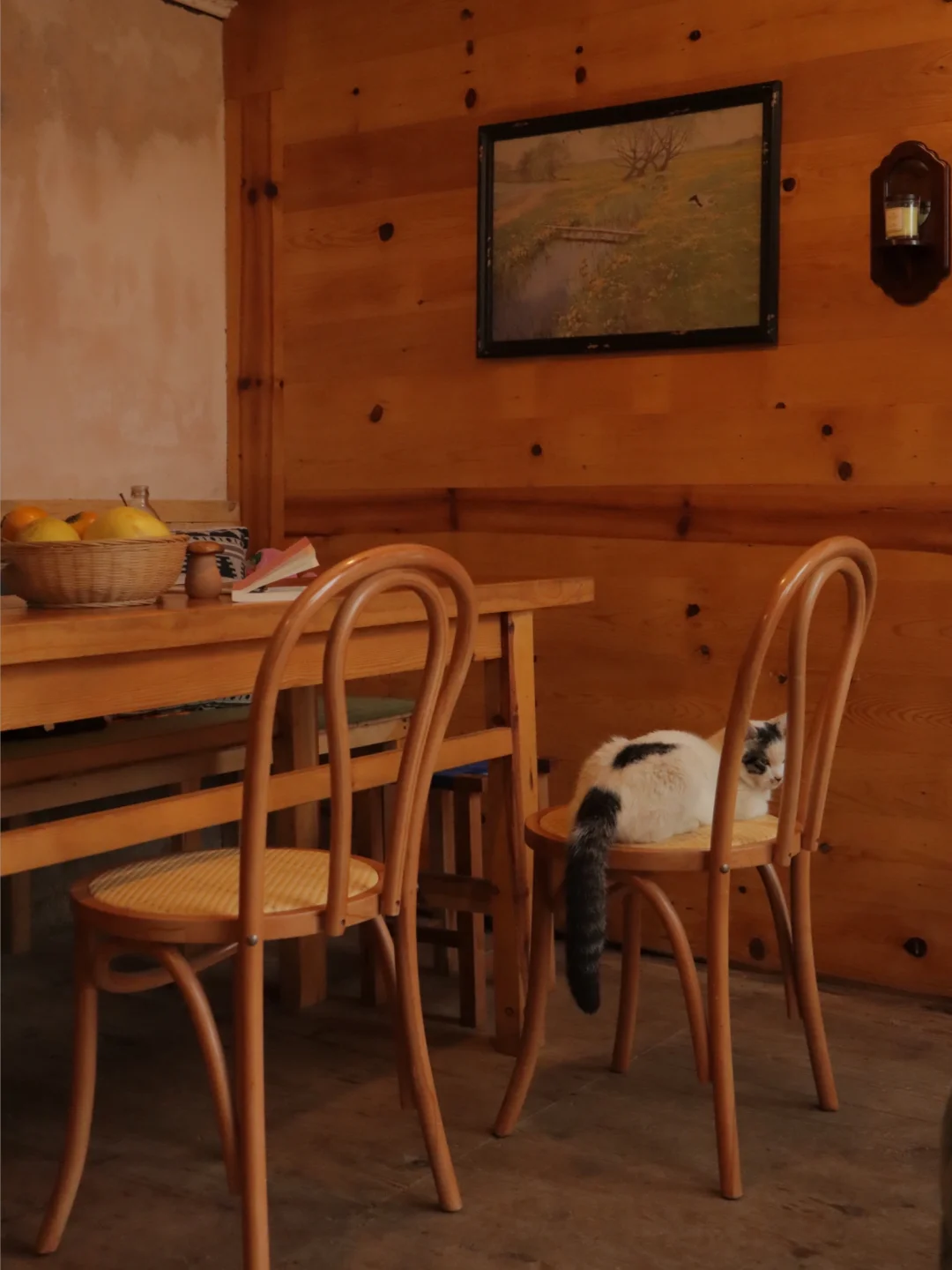 这段旅行住最得最久的一个地方。院子开门能见绿油油的农田,院子里有花有草有果树。下雨了就待在小木屋里看出,出太阳了就在院子和小猫小狗玩,想不到能比这更幸福的场景了🥹